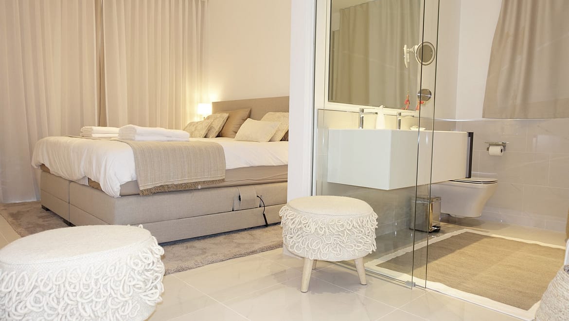This modern apartment has a spacious open-plan layout with high-quality finishes. The bright and spacious living-dining room flows seamlessly into the fully equipped kitchen, ideal for both everyday living and entertaining guests. Enjoy a fantastic corner private terrace that extends your living space outdoors and is accessible from the living room through double glazing. It is the perfect place to dine al fresco, relax or simply enjoy the Mediterranean sun.