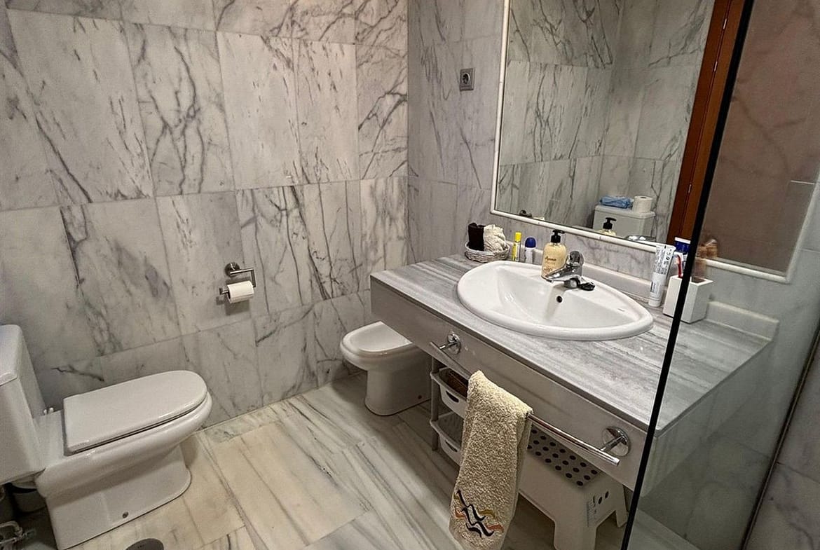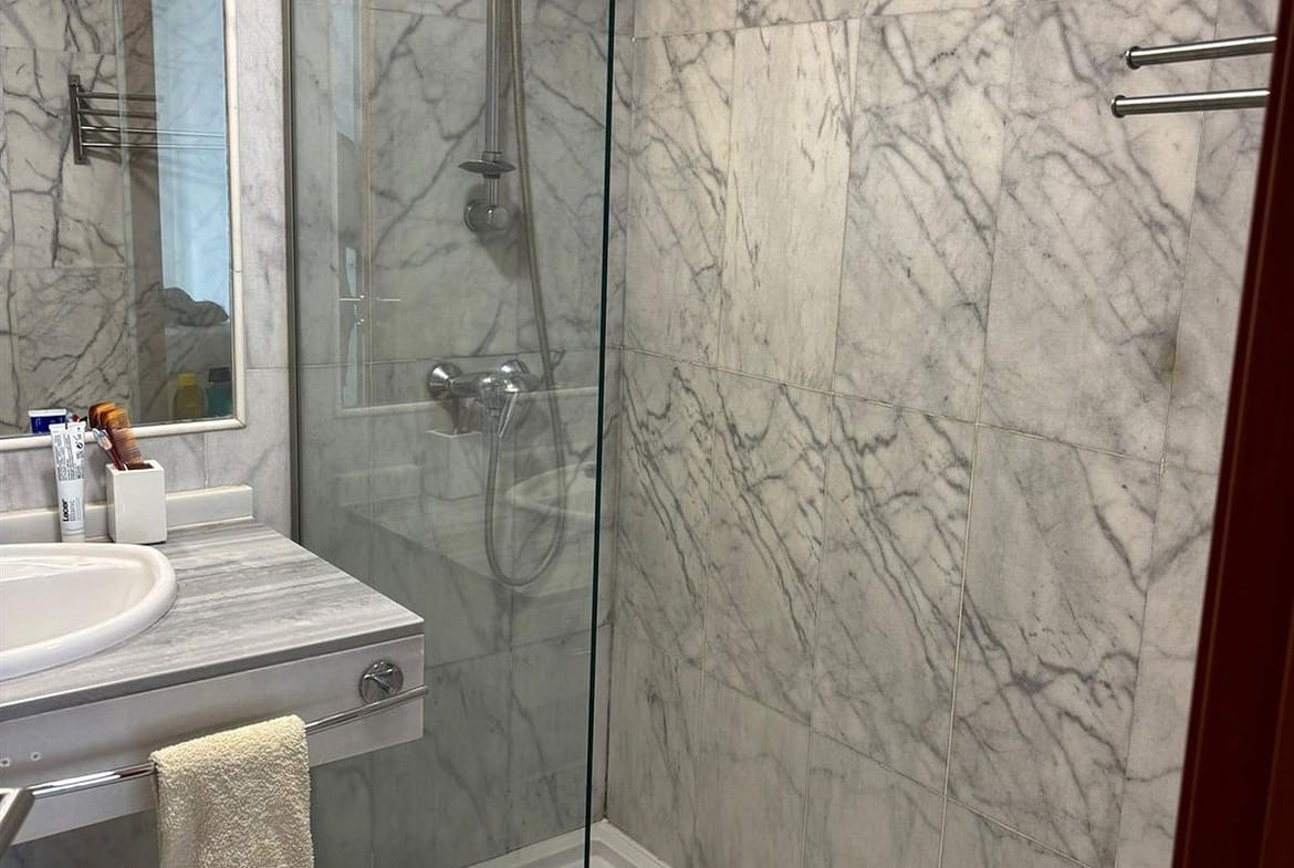 The apartment comes with built-in wardrobes, electric window shutters, and air conditioning (hot and cold). It’s being sold with a private underground parking space and a separate storage room.