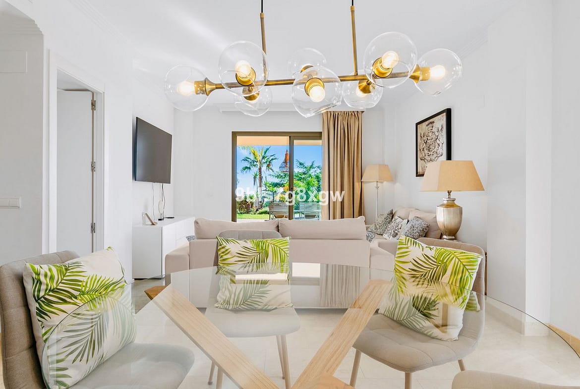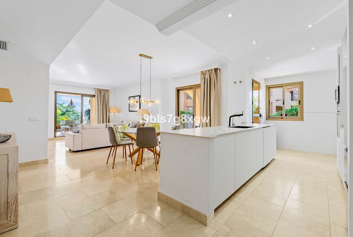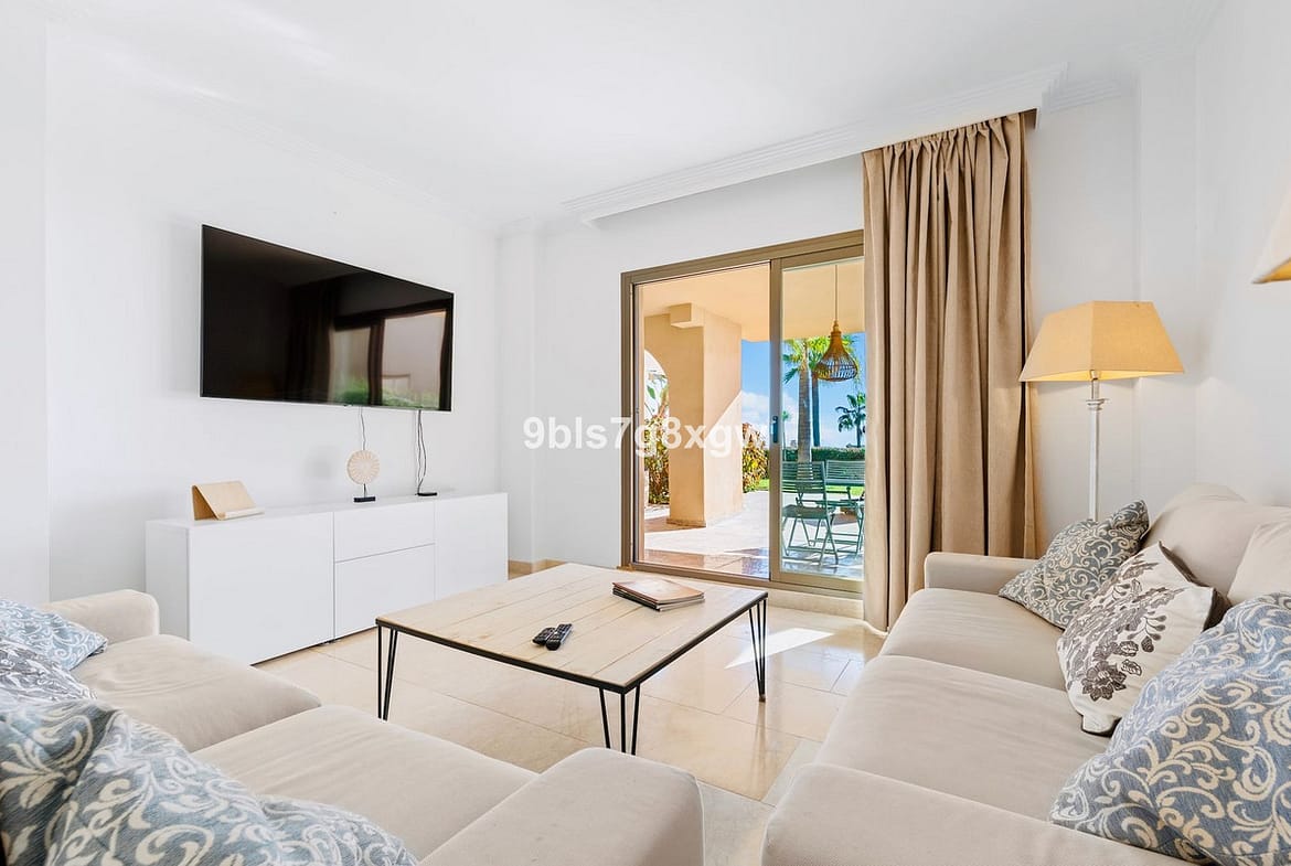 Superb and spacious 127m² ground-floor apartment, ideally located at the highest point of the development. It features two terraces totaling 78m², partially covered (perfect for year-round enjoyment), with direct access to the 140m² communal garden and offering beautiful views of the sea and Gibraltar. Being a corner unit, it enjoys optimal natural light thanks to its three façades and its south/southwest orientation.