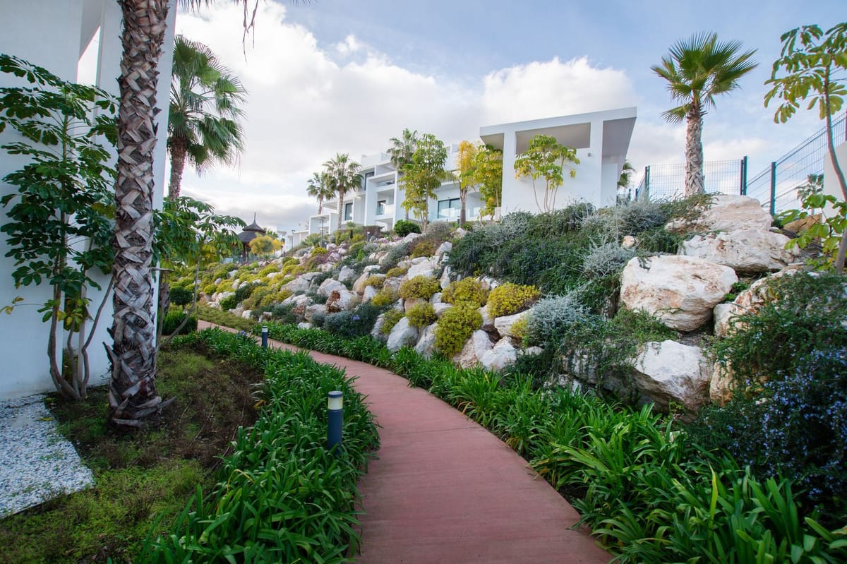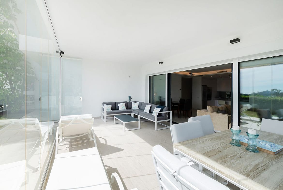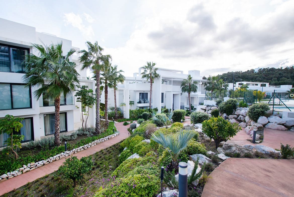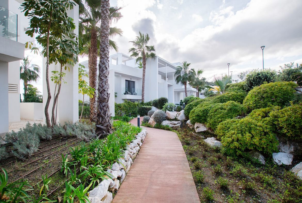Discover the perfect blend of modern luxury and tranquility in this beautifully renovated 3-bedroom ground-floor apartment located in the prestigious Atalaya Hills. Offering breathtaking views over lush gardens, this stunning corner unit provides exceptional privacy and a seamless indoor-outdoor living experience.