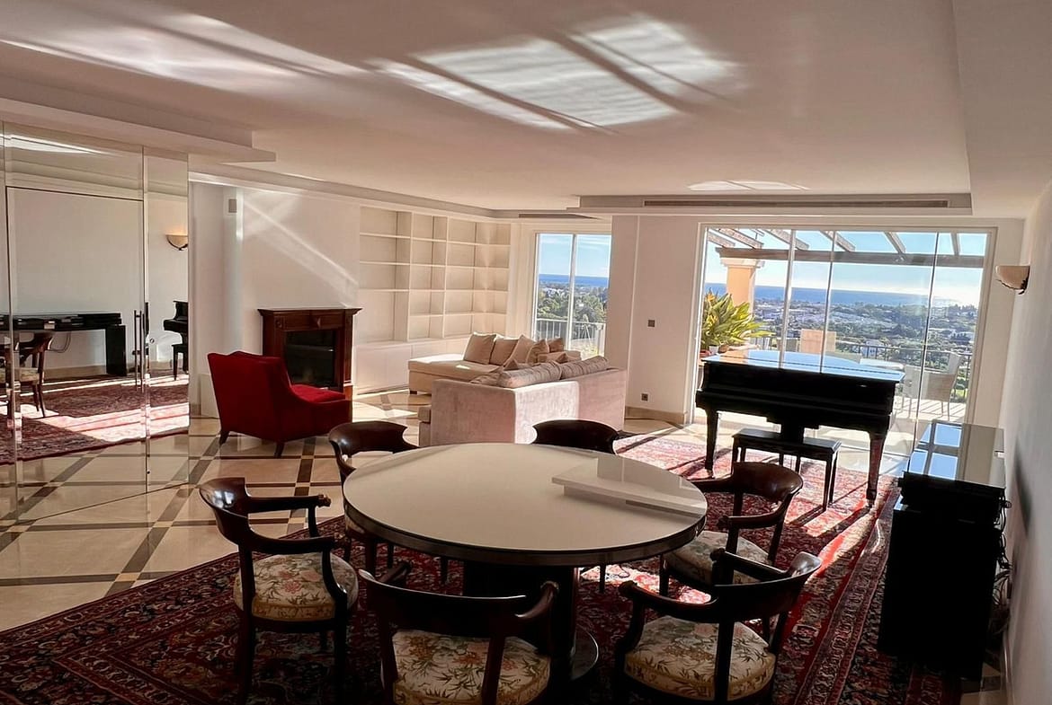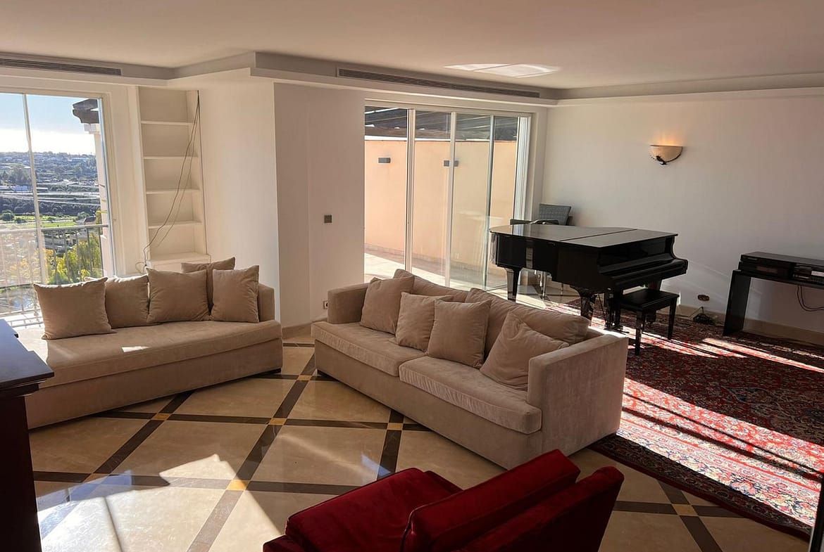 Stunning 3-level duplex apartment in a quiet, private residential complex surrounded by nature in Benahavís, offering breathtaking Mediterranean sea and mountain views.