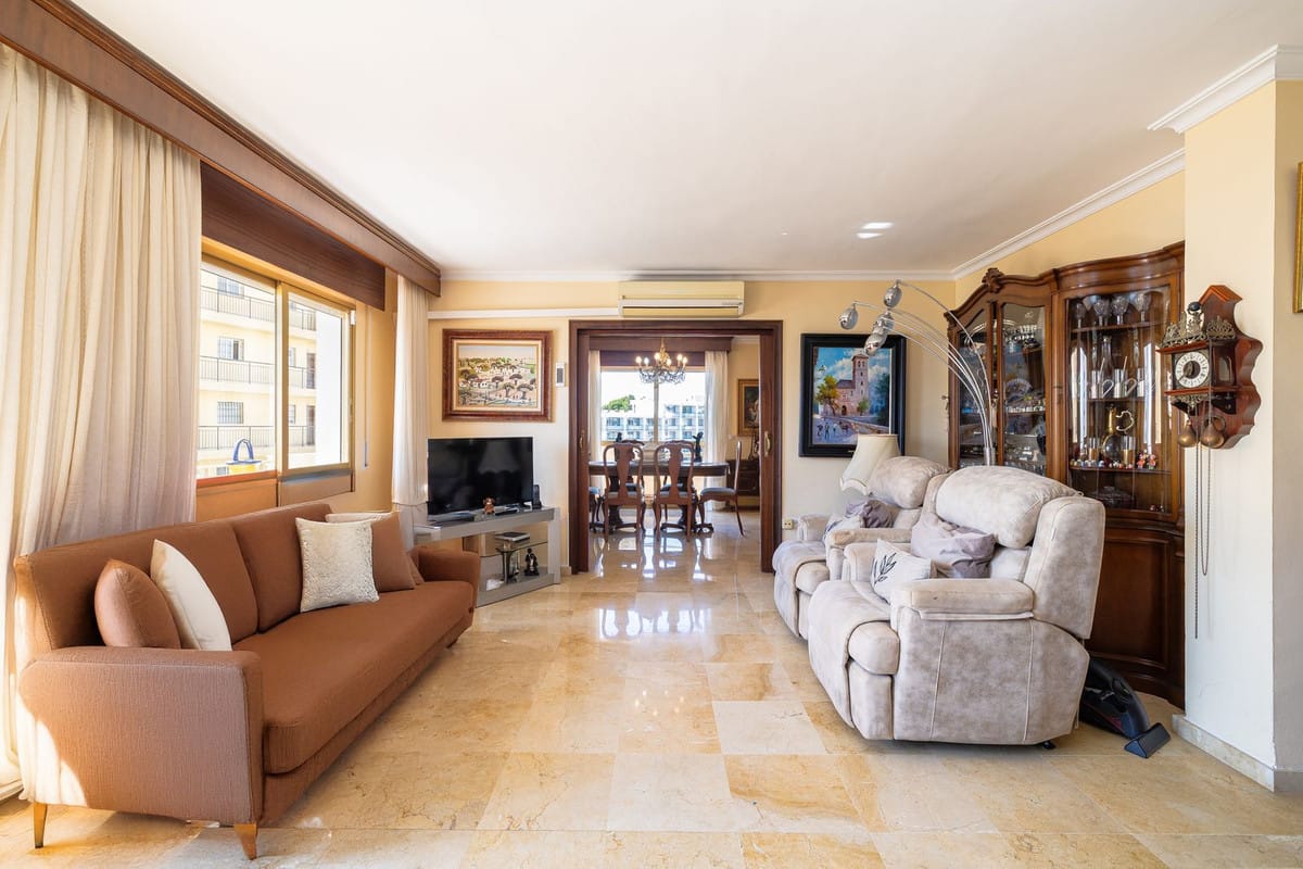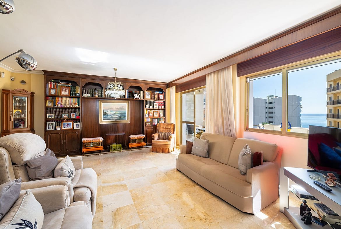 This flat is sold furnished and comes with fitted wardrobes, electric hot/cold pump heating and air conditioning to ensure your comfort at any time of the year. Located on the fourth floor, the building has a lift and offers a south-west orientation that ensures natural light throughout the day.