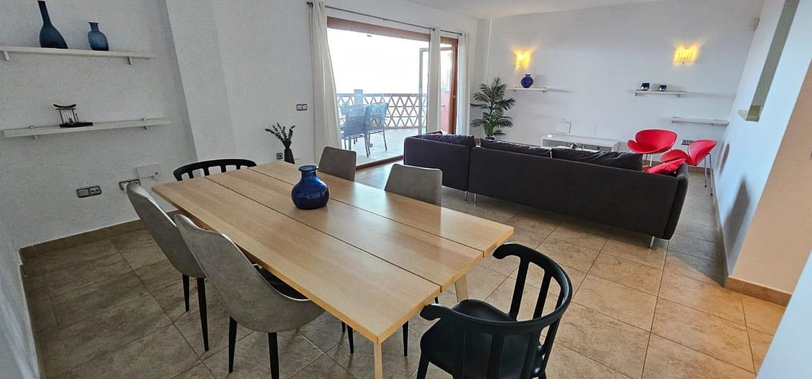 We present a spacious duplex penthouse for sale in the Altos del Higuerón area, Benalmádena. The house has an entrance with a kitchen, bedroom, bathroom, living room and dining room with access to a beautiful terrace with wonderful open views. We go up to the first floor and find two bedrooms with two bathrooms. Suite. Dressing room in the master bedroom. Built-in wardrobes. Alarm, central air. The house is sold with two closed garage spaces in the same community. Gardens and two community pools. Ready to move in!