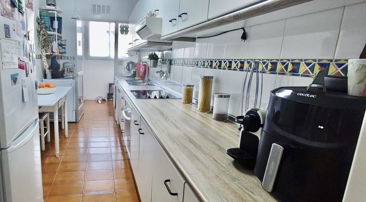 The property is located on the second floor of a building with a lift and has a floor area of 107 m², distributed over a master bedroom, two secondary bedrooms, a full bathroom (with the possibility of adding a second bathroom), a fully fitted and equipped separate kitchen with utility room, and a spacious living-dining room of approximately 25 m² with direct access to a pleasant 8 m² terrace, facing east and with unobstructed views of the communal areas.