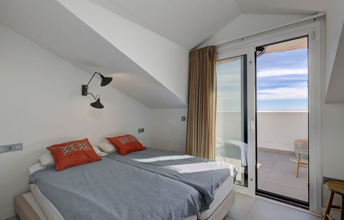 On the upper level there is the main bedroom with an en-suite bathroom and access to a spectacular rooftop terrace with a private jacuzzi and breathtaking views of the Mediterranean.