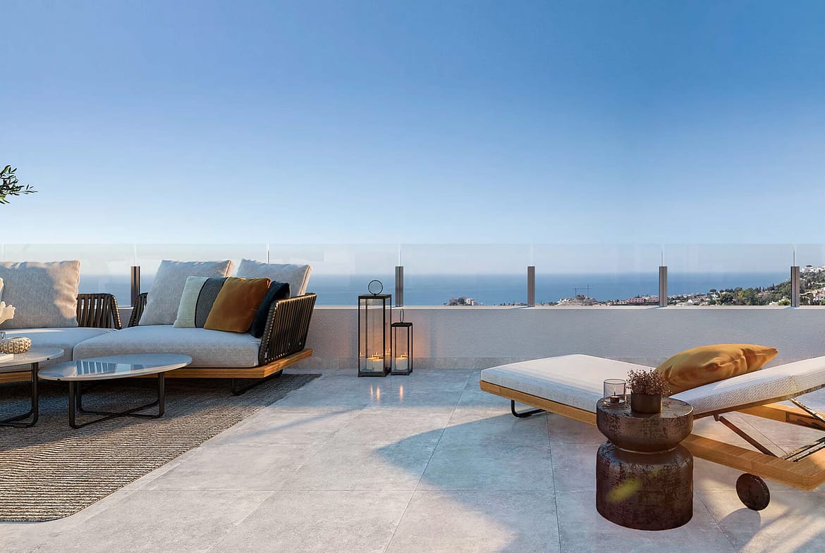 This development is an exclusive private development located in a privileged location in Benalmádena. Thanks to its elevated location, all homes will enjoy incredible panoramic views of the sea and the coast. The terraced layout of this development overlooking the Mediterranean Sea means that each and every one of the 49 apartments and 2 townhouses enjoys bright rooms thanks to natural light.