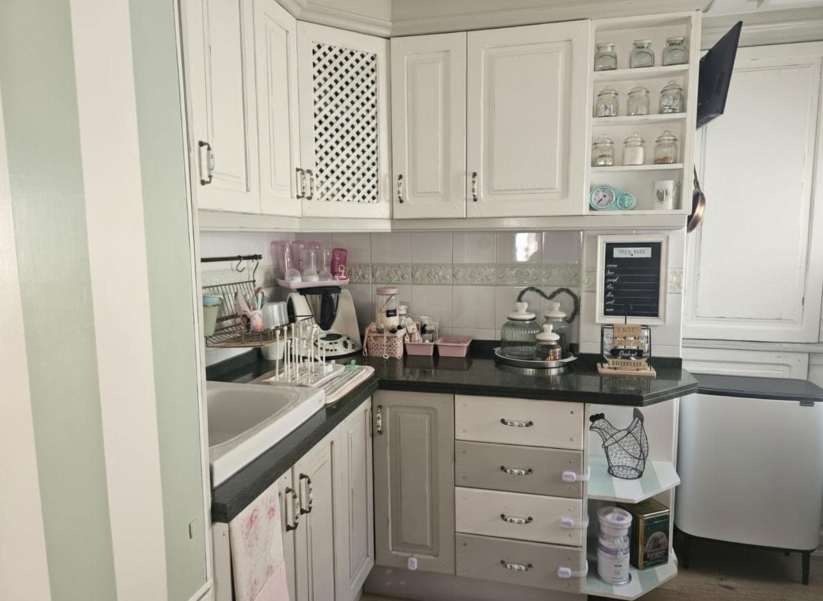 Kitchen and living room designed in a harmonious style, with every detail carefully chosen by the current owners