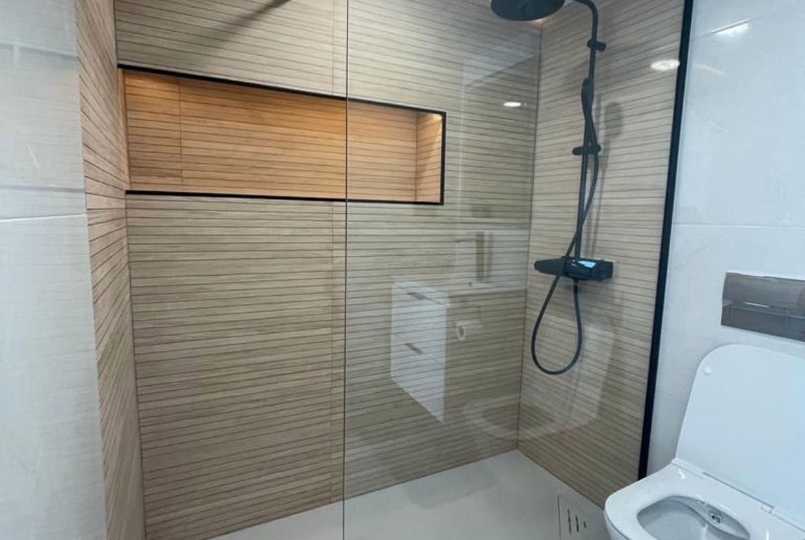 There are 3 bedrooms with fitted wardrobes, each bedroom has a window with sea views. There are 2 full bathrooms with shower trays, completely renovated with a minimalist style. There is no elevator, it is a second floor, once on the floor there are no stairs, the floor and the terrace are on the same level.