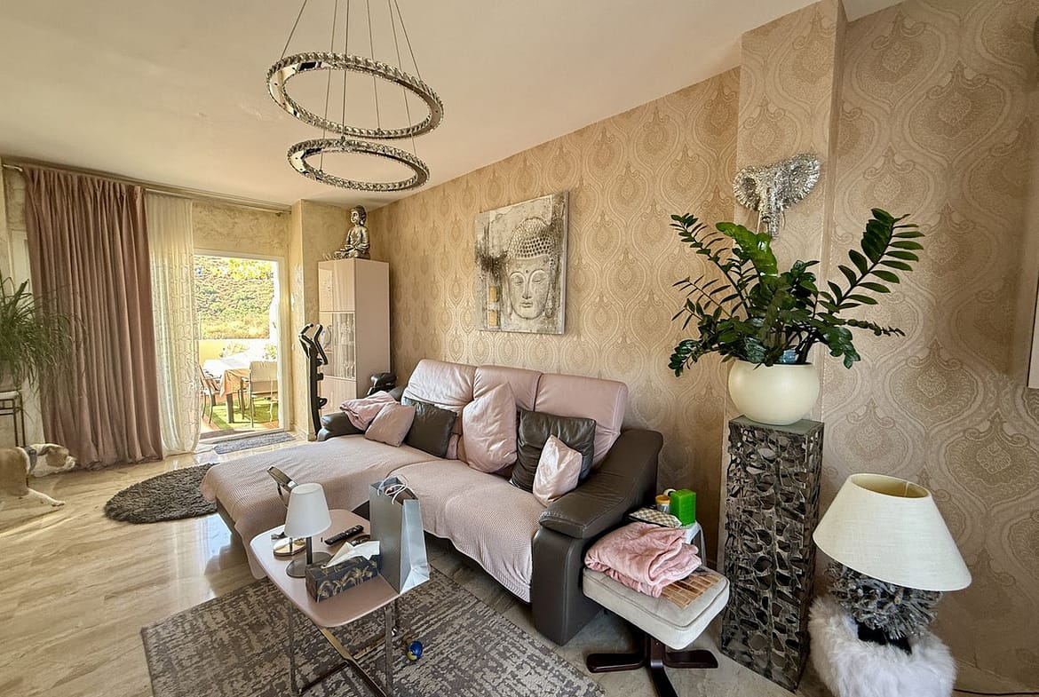 Situated within a well-maintained, gated urbanisation, this south-facing penthouse boasts an ideal setting close to golf courses, the beach, marina, shops, and restaurants. The apartment itself offers a generous 100 m² of living space, complemented by a spectacular 65 m² private terrace – perfect for sunbathing, dining, or simply enjoying the sweeping sea and mountain views.
