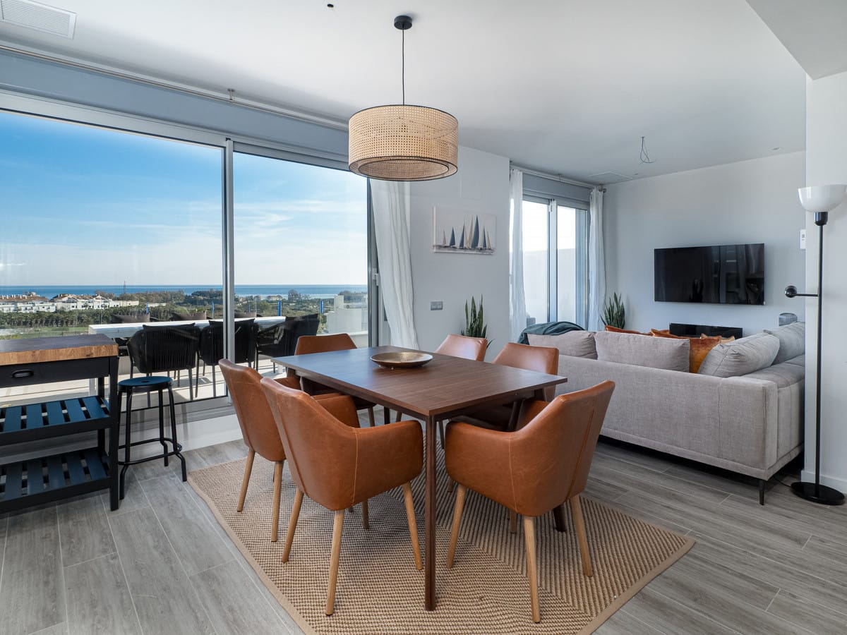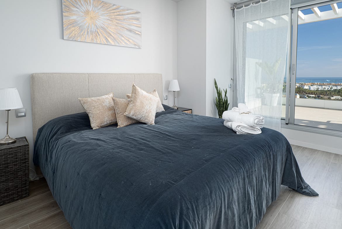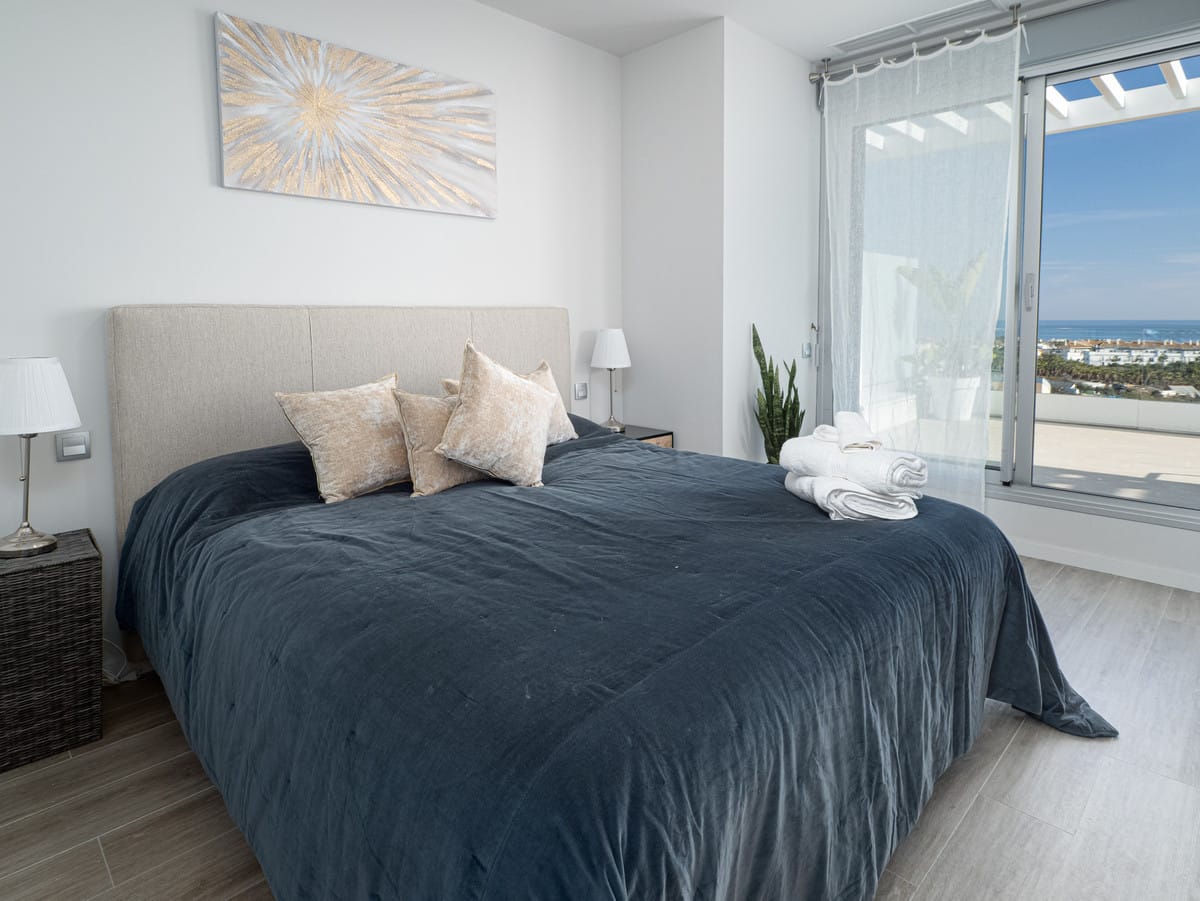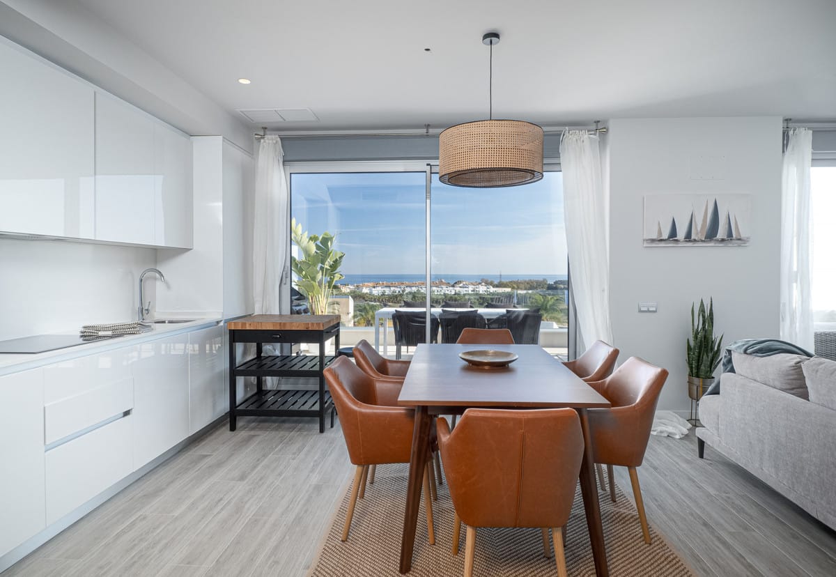 Brand new, furnished duplex penthouse apartment in the popular “Le Mirage” complex in Cancelada, within walking distance of amenities and with wonderful, panoramic sea views.