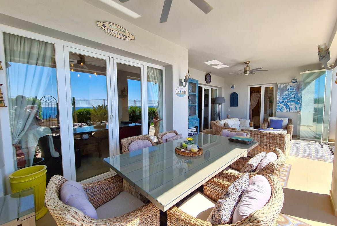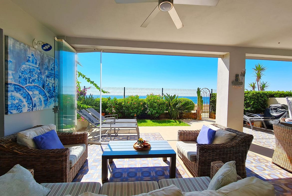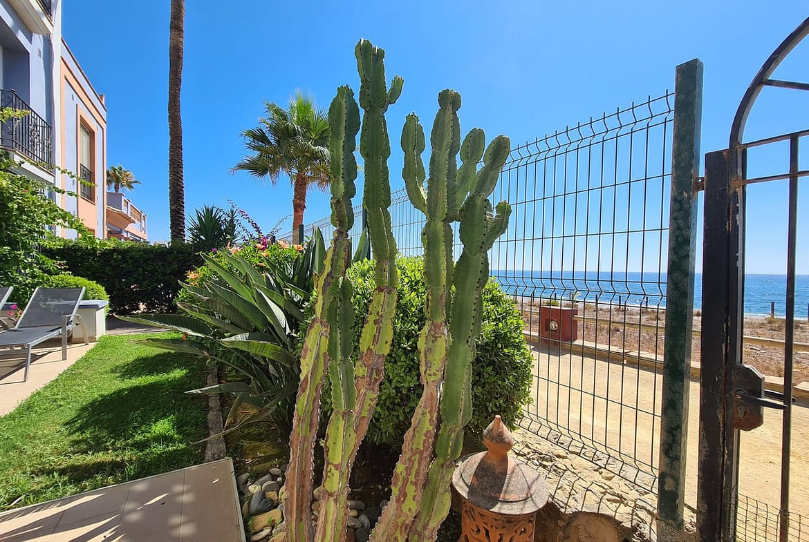Enjoying an excellent beachfront location with direct access to the coastal path and Casares Beach, just minutes from the Finca Cortesín Golf Course, one of the most prestigious golf courses in Spain, which has hosted numerous high-profile events, including the Volvo World Match Play Championship three times and the 2023 Solheim Cup. Just a 10-minute drive from Estepona and 4 minutes from San Luis de Sabinillas with its beautiful and picturesque Puerto de La Duquesa. Close to supermarkets, schools, and the new Estepona Hospital. This LARGE GROUND FLOOR APARTMENT WITH PRIVATE GARDEN AND SEA VIEWS has DIRECT ACCESS TO THE BEACH and is SOUTH FACING. The property boasts a spacious entrance hall leading to the spacious living-dining room with large windows that connect to the large covered terrace, which is enclosed by glass curtains and provides abundant natural light and beautiful views of the sea and the garden from inside the house. The open-plan kitchen is fully equipped and has a laundry room. These common areas have a guest toilet located next to the entrance of the house. The three bedrooms of the home are distributed from the living room area. The two guest bedrooms have large built-in wardrobes and large windows overlooking the beautiful communal gardens. Adjacent to them is a full bathroom with a bathtub and underfloor heating. The spacious master bedroom has a dressing area and an en-suite bathroom with a whirlpool bathtub, separate shower, double sinks, and underfloor heating. This bedroom also has direct access to the private terrace. The home enjoys beautiful and well-maintained common areas with several swimming pools and ideal gardens. GREAT OPPORTUNITY TO EXPERIENCE THE LUXURY OF HAVING YOUR HOME ON THE SHORES OF THE MEDITERRANEAN SEA!!