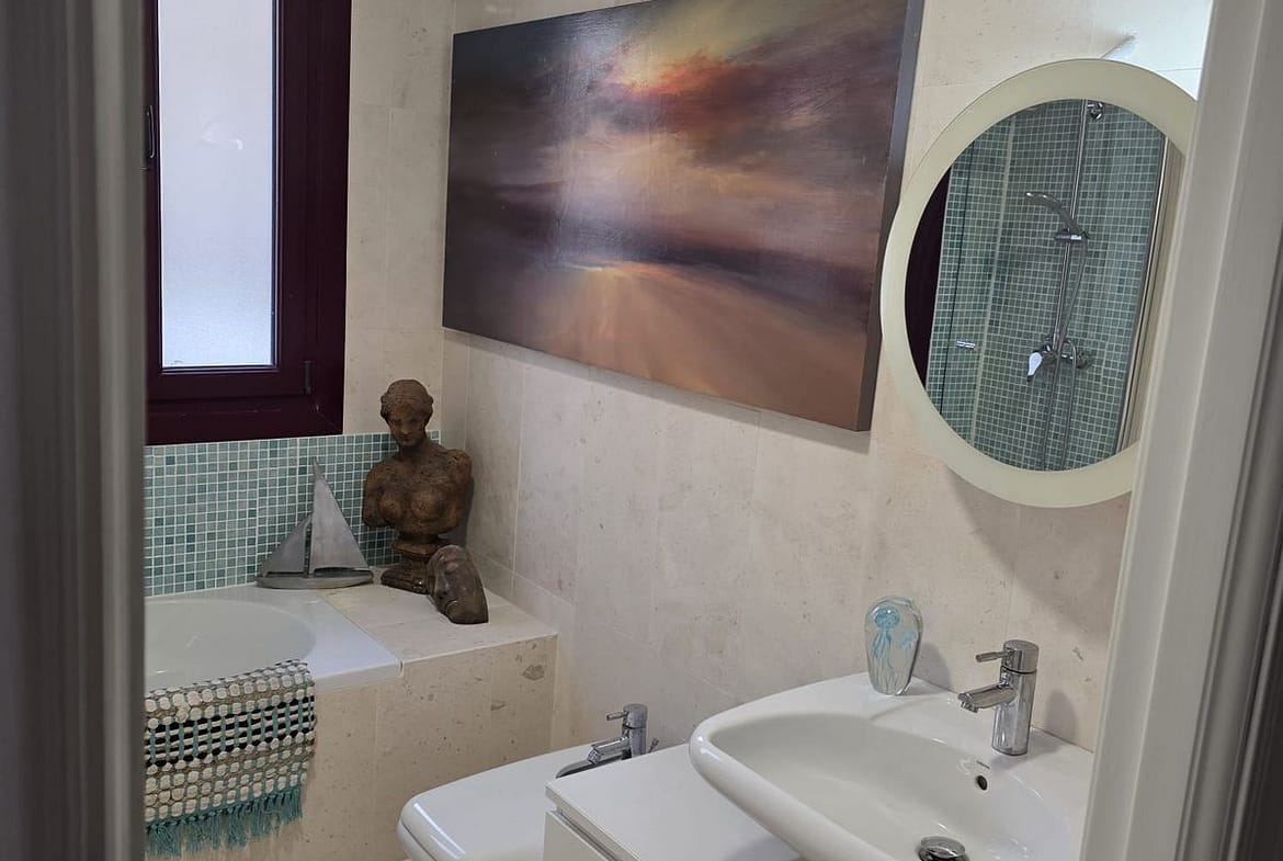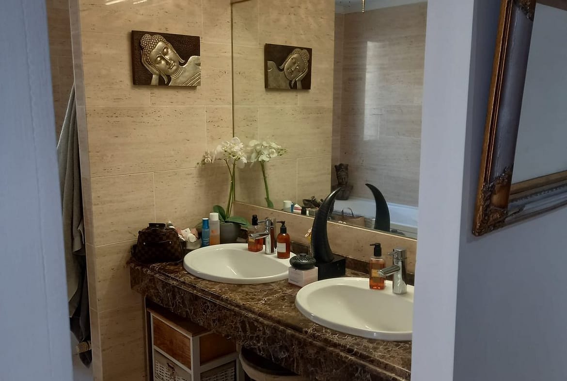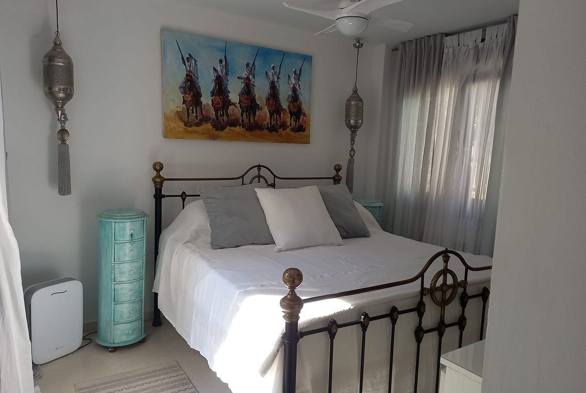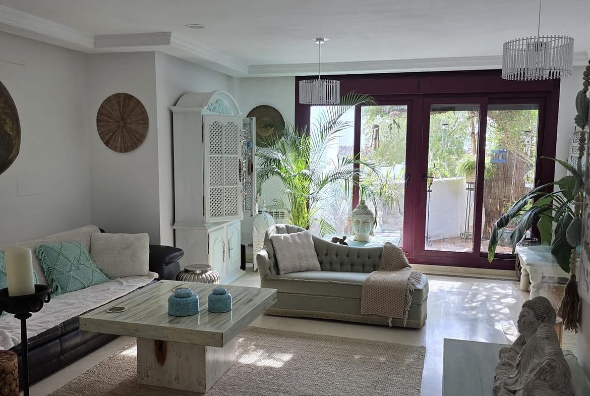 Nestled in the prestigious Casares Golf Garden urbanisation, a secure gated community renowned for its lush Mediterranean landscaping and proximity to the world-class Finca Cortesín Golf Resort – voted Europe's best golf resort multiple times – this stunning elevated ground floor apartment offers an idyllic blend of tranquillity and convenience just minutes from pristine beaches like Playa Ancha and surrounded by top golf courses including Doña Julia and Casares Golf, as well as charming restaurants and amenities in nearby Estepona (10-minute drive) or Manilva. With 136 m² built (130 m² usable), the property features three spacious bedrooms with built-in wardrobes, three modern bathrooms, a generous terrace for al fresco dining, air conditioning throughout for year-round comfort, central gas heating, and a private garden perfect for relaxation under the Andalusian sun, all enhanced by 24-hour security, communal swimming pools, and expansive gardens. Additional perks include two private underground parking spaces and a large storage room, making it ideal as a luxurious second home, family residence, or investment in this sought-after area between Gibraltar (30 minutes) and Marbella (25 minutes).