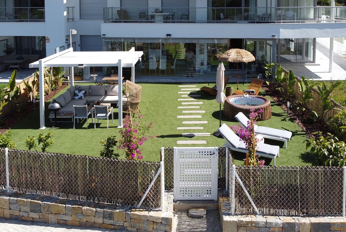 Brand new fully furnished 3 bed apartment with a large sunny garden. This property has 3 spacious bedrooms and 2 bathrooms. The community offers luxury facilities that include an indoor pool, multiple outdoor pools, a gym, paddle courts and more. The property is sold fully furnished, so all you have to do is bring a suitcase! The garden is fully set up with irrigation system, a jacuzzi and a beautiful seating area with pergola. The surrounding has a lot to offer, with La Cala de Mijas and Fuengirola just a 5 minute drive away. You can walk to the beach in 10 minutes. Contact us now to book your viewing.