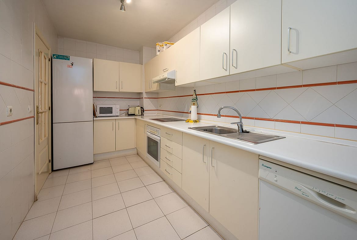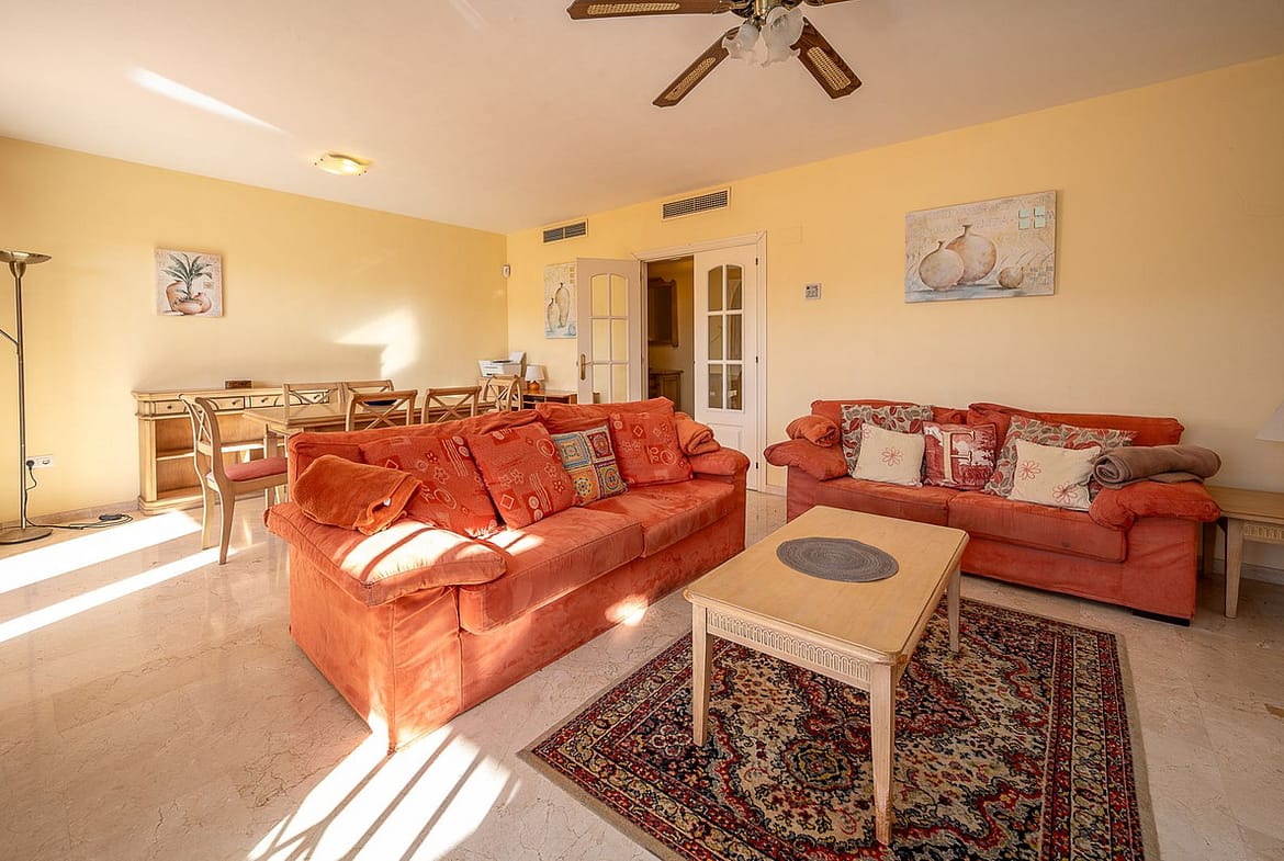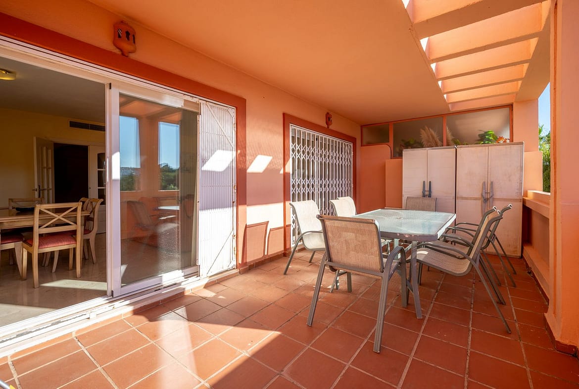 One-level apartment consisting of 3 double bedrooms, together with 3 bathrooms a large L shape terrace with the bonus of half being covered and the other half open to be able to enjoy the sun all day long which you has limited sea views. Property comes with hot/cold air conditioning, underground parking space, lift to the apartment, marble floors throughout & is being sold fully furnished. Well-kept community gardens, gated complex with a community pool. The apartment is situated in el Chaparral, located near the shops and public transport, walking distance to the beach. With a little bit of tender loving care this property could be made into a beautiful family home. Well worth a viewing, keys in the office!
