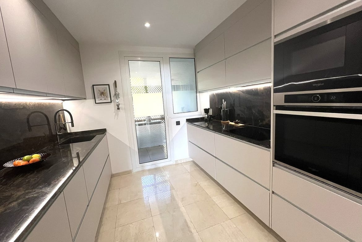Meticulously renovated throughout, the apartment combines style and functionality with its three well-appointed bedrooms, two elegant bathrooms, and fully enclosed terraces that extend the living space for year-round enjoyment. Every detail has been thoughtfully designed to create a bright, inviting atmosphere that blends indoor sophistication with outdoor charm.