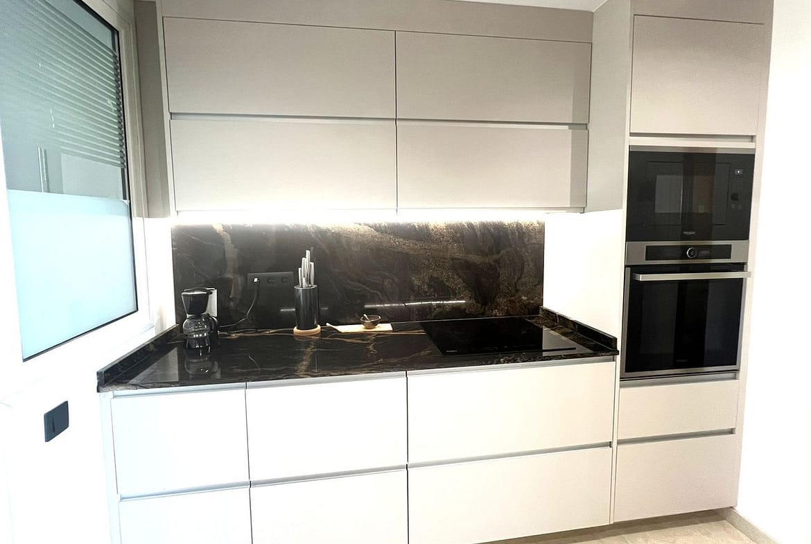 Discover this exceptional first-floor corner apartment, where modern comfort meets breathtaking scenery. Boasting two expansive, glassed in terraces, the residence offers panoramic views that stretch from the sparkling Mediterranean Sea to the majestic surrounding mountains — the perfect setting to enjoy sunrise coffees or sunset gatherings.