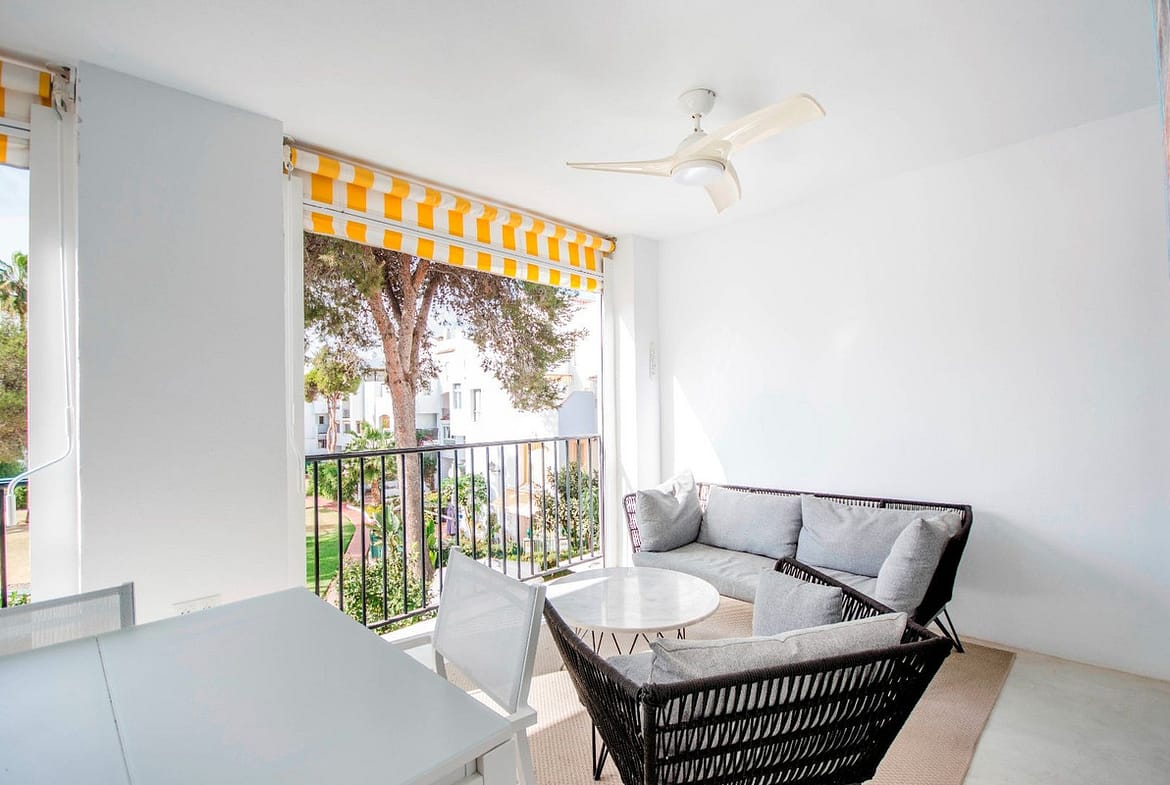 This elegant apartment, with a modernist touch, is located in the prestigious Parque Elviria urbanization in Marbella, Málaga, offering a bright and modern living experience. With three spacious bedrooms and two thoughtfully designed bathrooms, the interior reflects a contemporary style with high-quality finishes and a neutral color palette that maximizes the feeling of spaciousness and light.