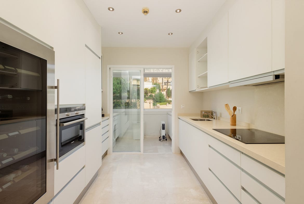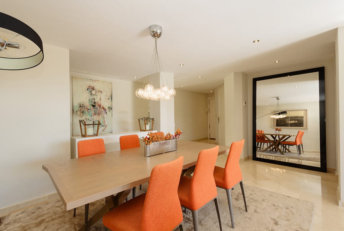 Directly off the entrance is the living-dining room with a large dining table with 6 chairs, the lounge has a sofa with space for the whole family to enjoy movies or game evenings. The terrace is very large and south facing, so you can have breakfast in the morning in the sun overlooking the coast of Marbella.