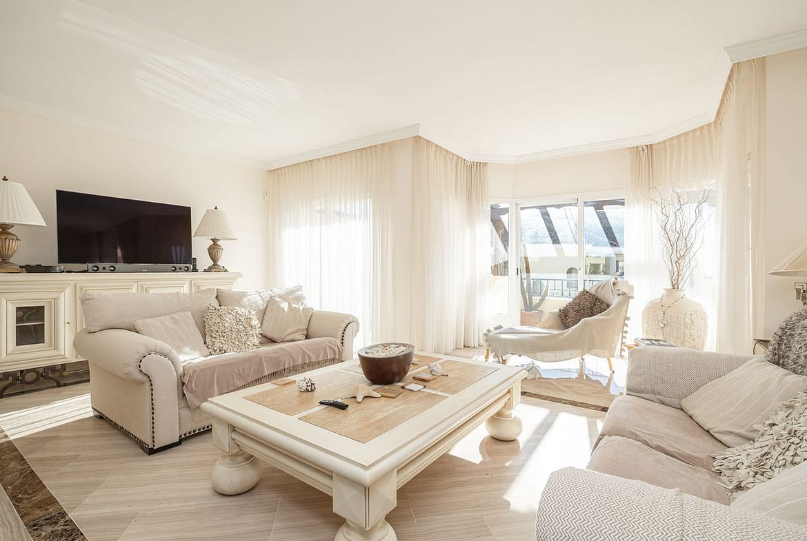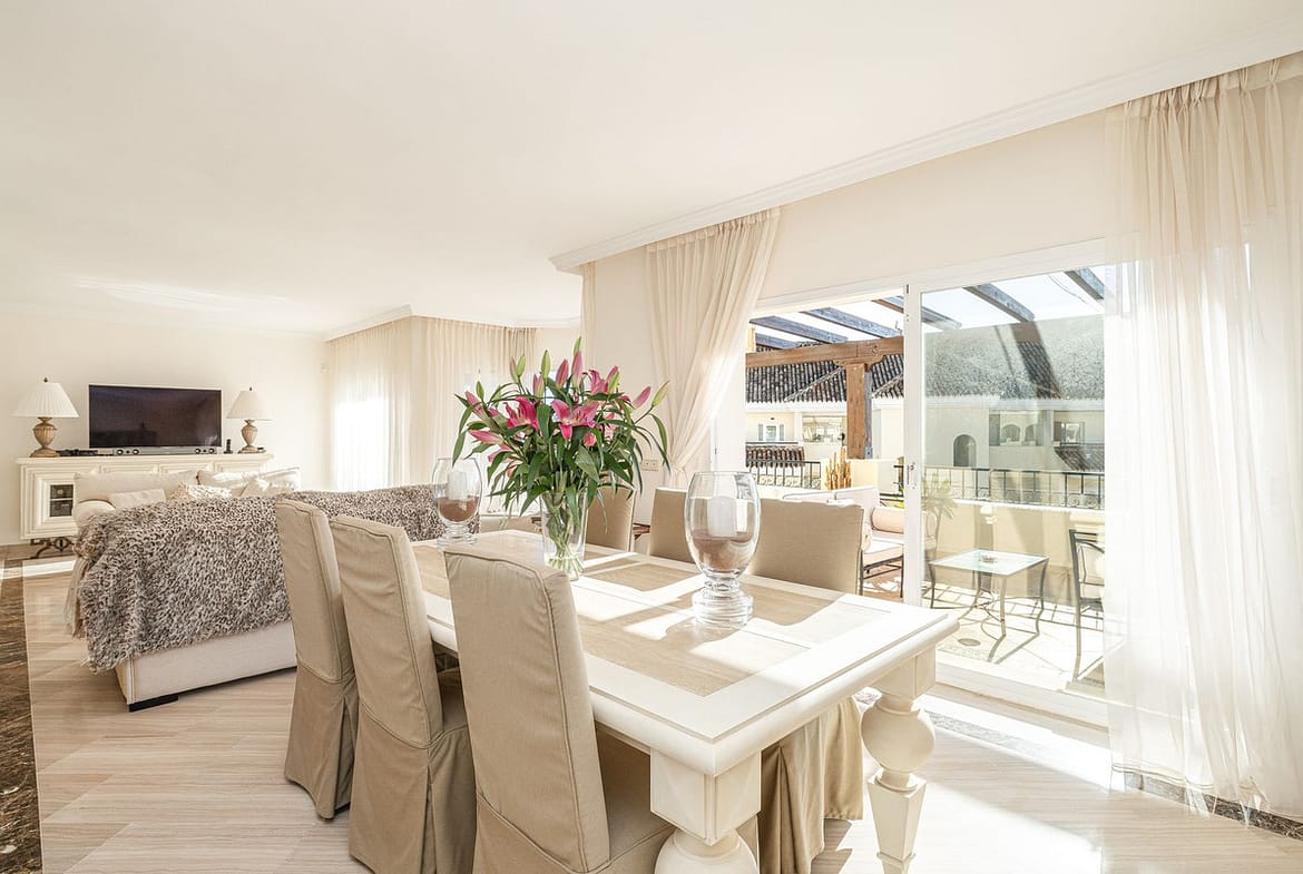 Fabulous 3-bed, 3-bath duplex penthouse located in the enviable and luxurious beachside area of Elviria (Marbella.) This is an incredible opportunity not to be missed. The main floor offers a spacious living area, a fully fitted kitchen, one en-suite bedroom, and an impressive wrap-around terrace. The upper floor features two further double en-suite bedrooms, both south-facing and filled with natural light. Enjoy 114 m² of sunny, south-facing terraces, perfect for outdoor dining and relaxation. The property is sold fully furnished, includes a garage space, and is just a short walk to some of Marbella’s best beaches, beach clubs, bars, and restaurants. Located in a highly sought-after development, only 15 minutes’ drive to Marbella Old Town and 25 minutes to Málaga Airport.