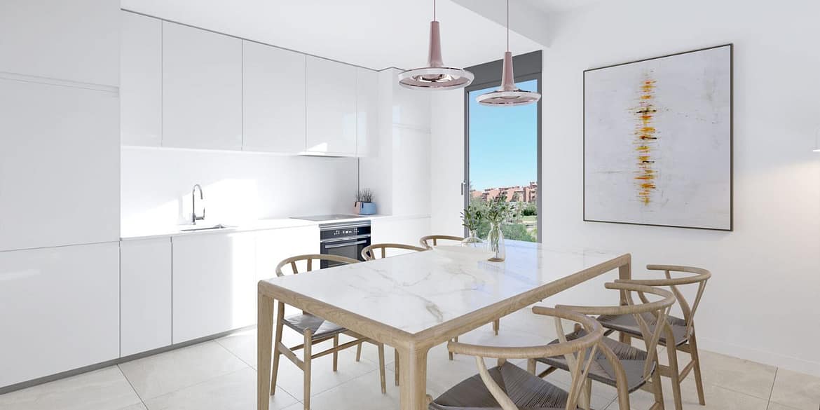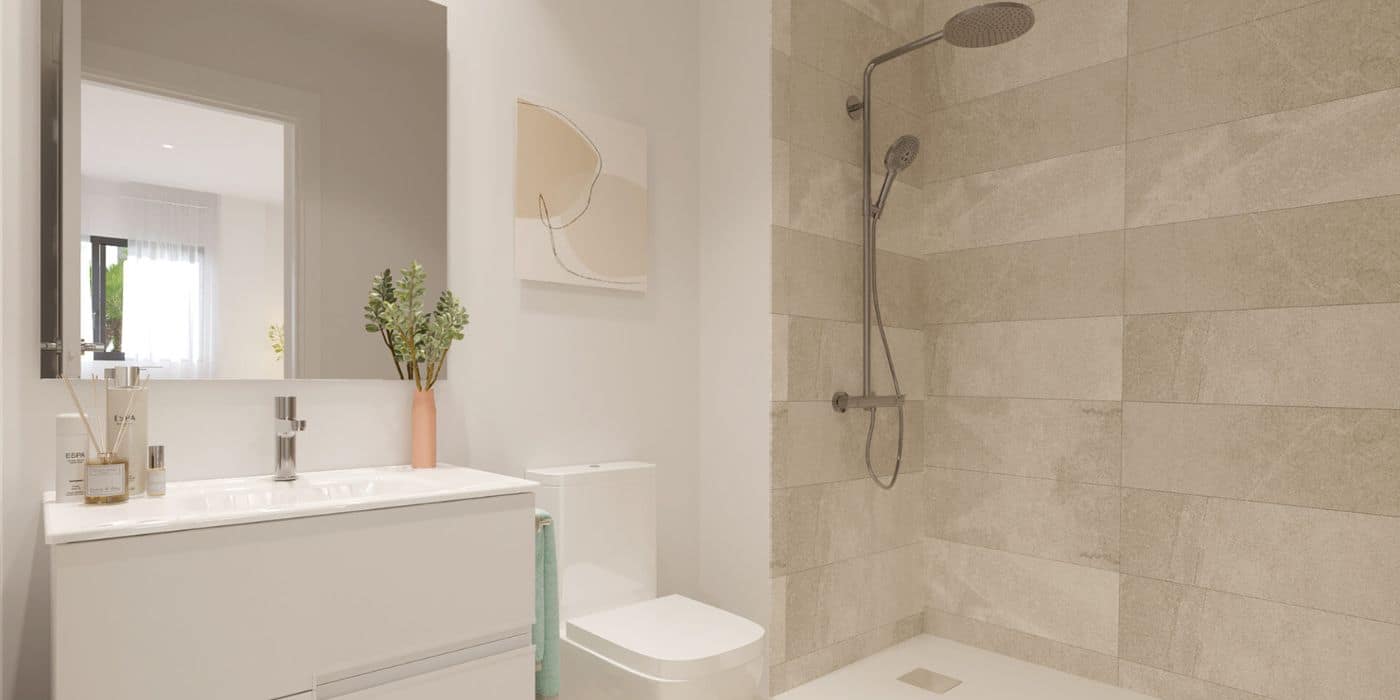 Within the large common areas we find a large number of plant species that surround the pool, as well as a gym, outdoor meditation area, spa, community room with co-working, beach volleyball court, children’s area and putting green. All these common uses together with the prominence of the gardens with palm trees, citrus and aromatic plants, as well as paths through these green areas, make this development the perfect place to enjoy the climate, nature and tranquility.
