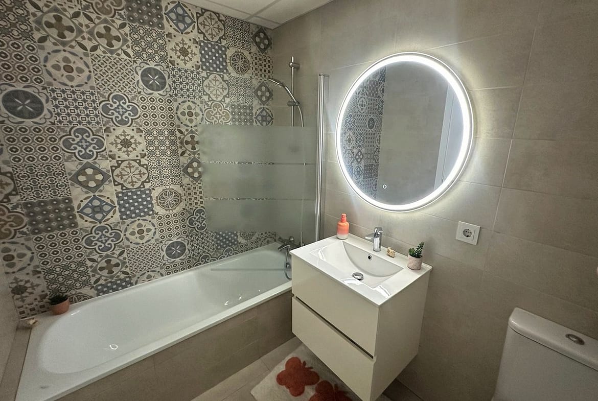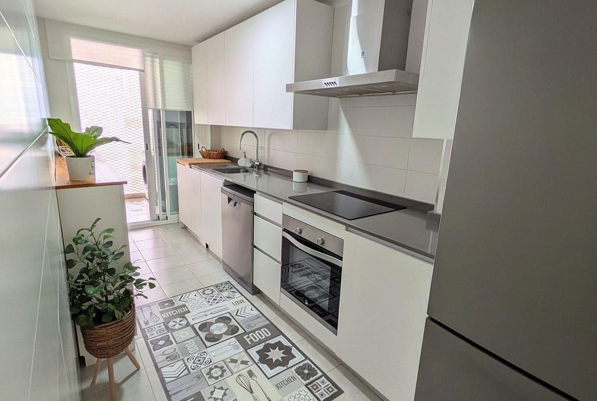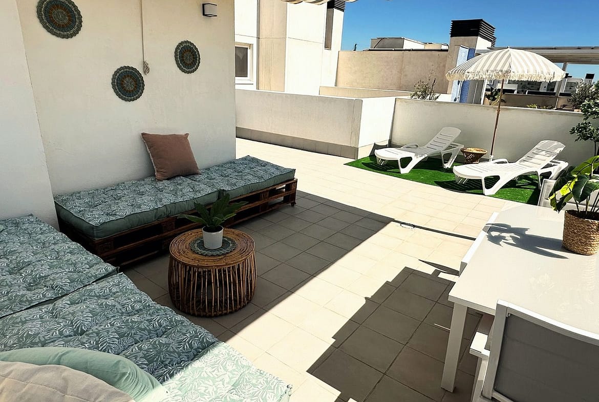 Spanning 180 m² of impeccably designed space across two levels on the seventh floor, the main level features a spacious living-dining room seamlessly connecting to a semi-covered terrace, ideal for embracing the Mediterranean climate amid unobstructed views. The independent, modern kitchen is fully equipped with high-end appliances and includes a practical external laundry area. The sleeping area offers three generous bedrooms—two doubles, with the master benefiting from an en-suite bathroom—plus a second full bathroom, ensuring comfort and privacy for families or guests. The true highlight is the private 70 m² rooftop solarium: an exclusive haven for relaxation, hosting gatherings, or savouring stunning sunsets over the coastline.