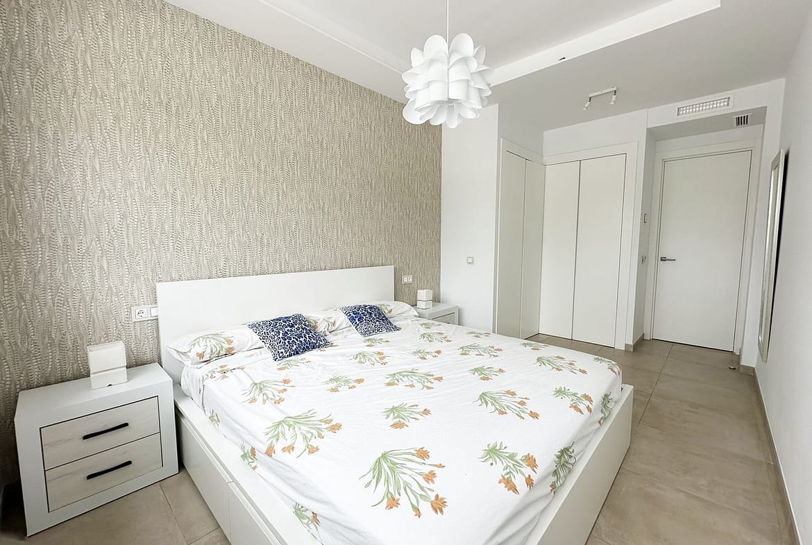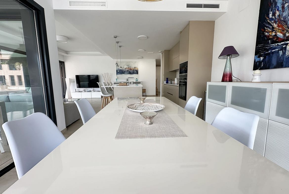 Upon entering the apartment you will find a spacious living room with an open plan kitchen and dining area with floor-to-ceiling windows allowing easy access to the terrace and natural light. They include state of the art appliances and top quality finishes courtesy of the design firm Gunni and Trentino. It offers an ideal layout with 3 bedrooms and 2 bathrooms. The master bedroom is en-suite, with a private bathroom and direct access to the terrace. The hallways have ample built-in closets, offering abundant and practical storage.