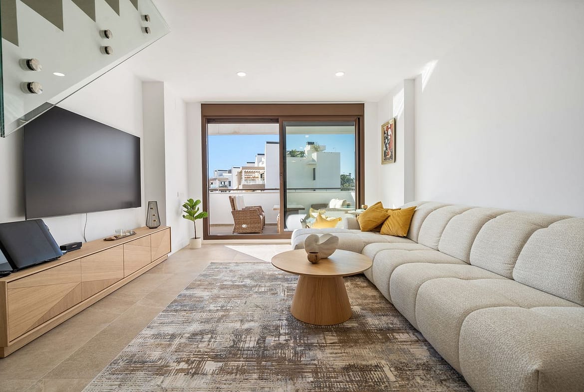 Elegant three-bedroom penthouse in South Place, a modern residential complex in the heart of Estepona’s Las Mesas area.