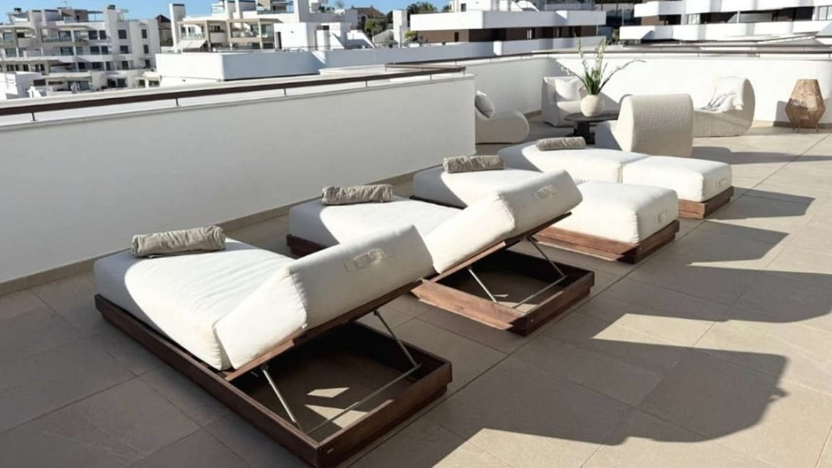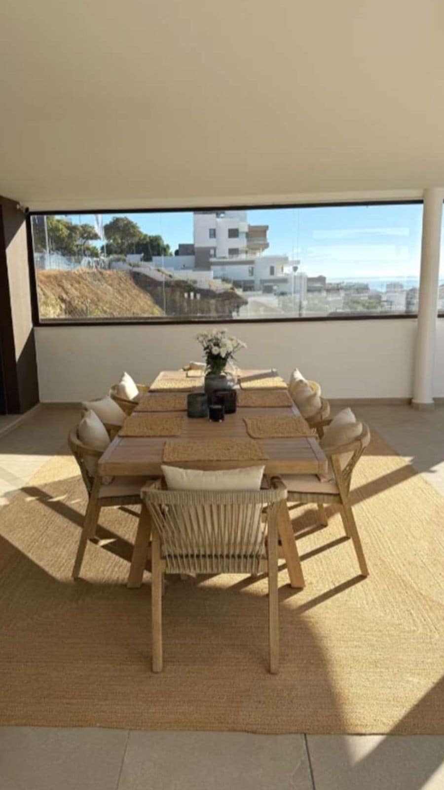 Where contemporary architecture and high-quality design come together to create an elegant and comfortable living environment. The apartment offers 112 m² of built space (94 m² usable) with a well-planned open-plan layout that seamlessly integrates the living room and the modern fully fitted kitchen, creating a spacious and sociable atmosphere filled with natural light thanks to large sliding glass doors. These open directly onto the property’s standout feature: an exceptional terrace of approximately 115 m², designed as a true extension of the living space and ideal for enjoying the Costa del Sol lifestyle all year round. The terrace enjoys sun throughout the day, features generous lounge and dining areas, is partially covered for shade and comfort, and includes partially glazed panels that provide wind protection and additional privacy, while offering pleasant open views towards the communal pool, surrounding greenery and the Mediterranean Sea in the distance.