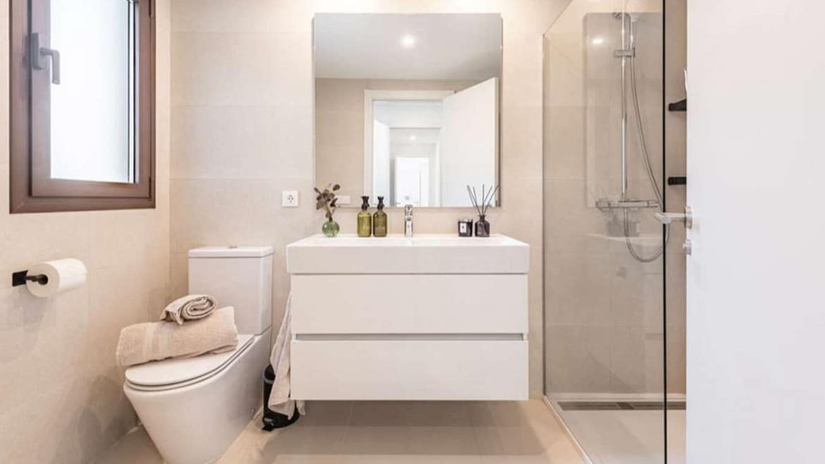 The apartment comprises three tranquil bedrooms with fitted wardrobes, including a master bedroom with en-suite bathroom and direct access to the terrace, while the remaining two bedrooms are ideal for guests, children or a home office, with two of the bedrooms also benefiting from terrace access. Both bathrooms feature a timeless, minimalist design with walk-in glass showers, large mirrors, high-quality finishes and excellent storage solutions, with the en-suite bathroom adding an extra touch of luxury. Additional features include air conditioning with hot and cold settings, a smart NUKI entrance lock controllable via mobile app, a separate laundry area discreetly located on a smaller front balcony, and orientation to the south and west for optimal natural light. The property includes a private underground parking space and a storage room, both easily accessible by lift, and the building is adapted for people with reduced mobility.
