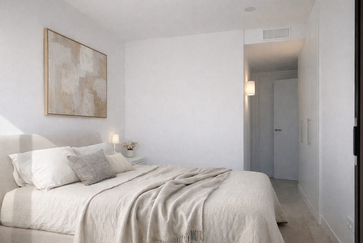 The finishes have been carefully selected: porcelain stoneware floors, white lacquered doors, exterior carpentry with double glazing, and motorized shutters in the living room and bedrooms. Additionally, it features ducted air conditioning with independent control, aerothermal system for hot water, and mechanical ventilation to ensure maximum comfort and energy efficiency throughout the year. The apartment includes 2 underground parking spaces and a large storage room, all within a gated complex that offers security and peace of mind.