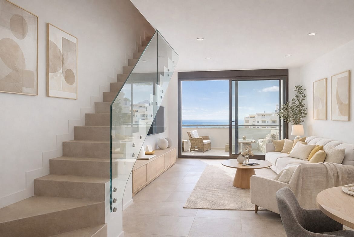 This ready to move in duplex penthouse, set within a modern community in Las Mesas of Estepona Port area, stands out for its impressive solarium with panoramic sea views. Built in 2025, the property offers a contemporary lifestyle in a sought-after location, with easy access to local amenities, beaches, golf courses, shops, restaurants, and schools. The residence forms part of a gated community featuring a communal pool, mature gardens, gym, and sauna, ensuring a comfortable and convenient living environment.