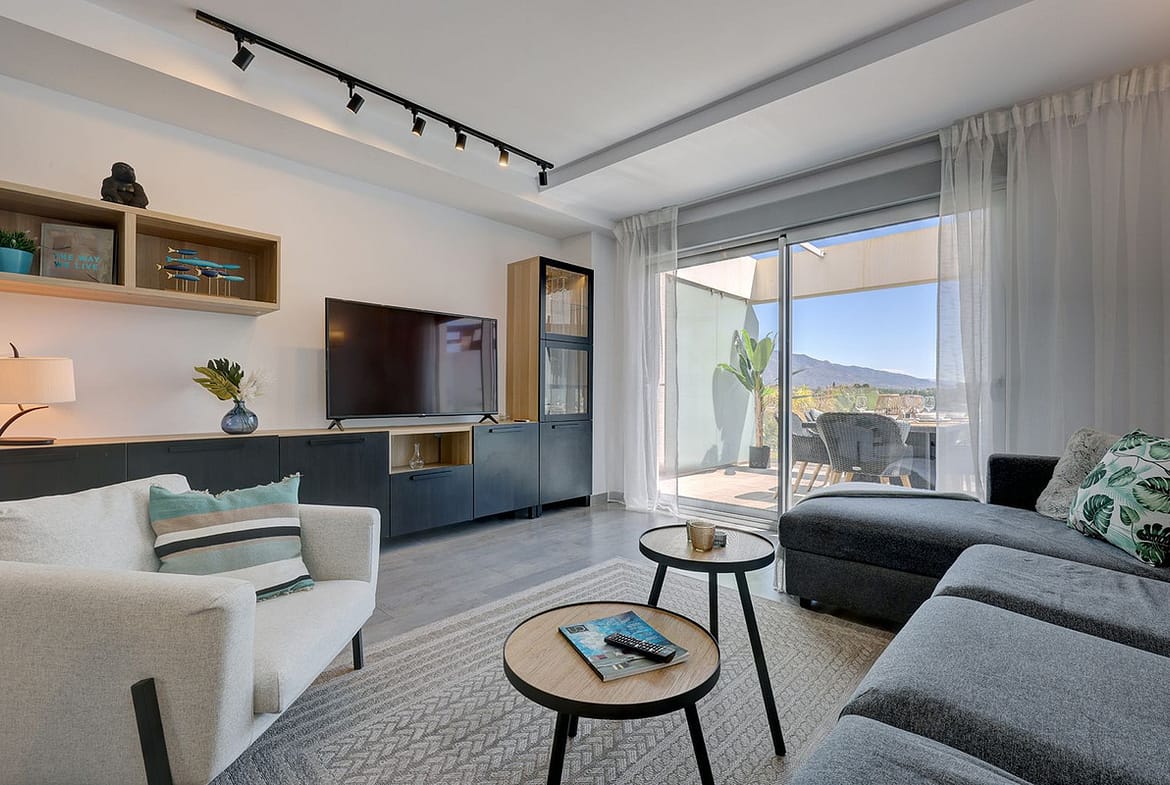 Modern 3-bedroom, 2-bathroom corner apartment in Marqués de Guadalmina, Atalaya. New build, spacious and beautifully decorated, with plenty of natural light and five private terraces.