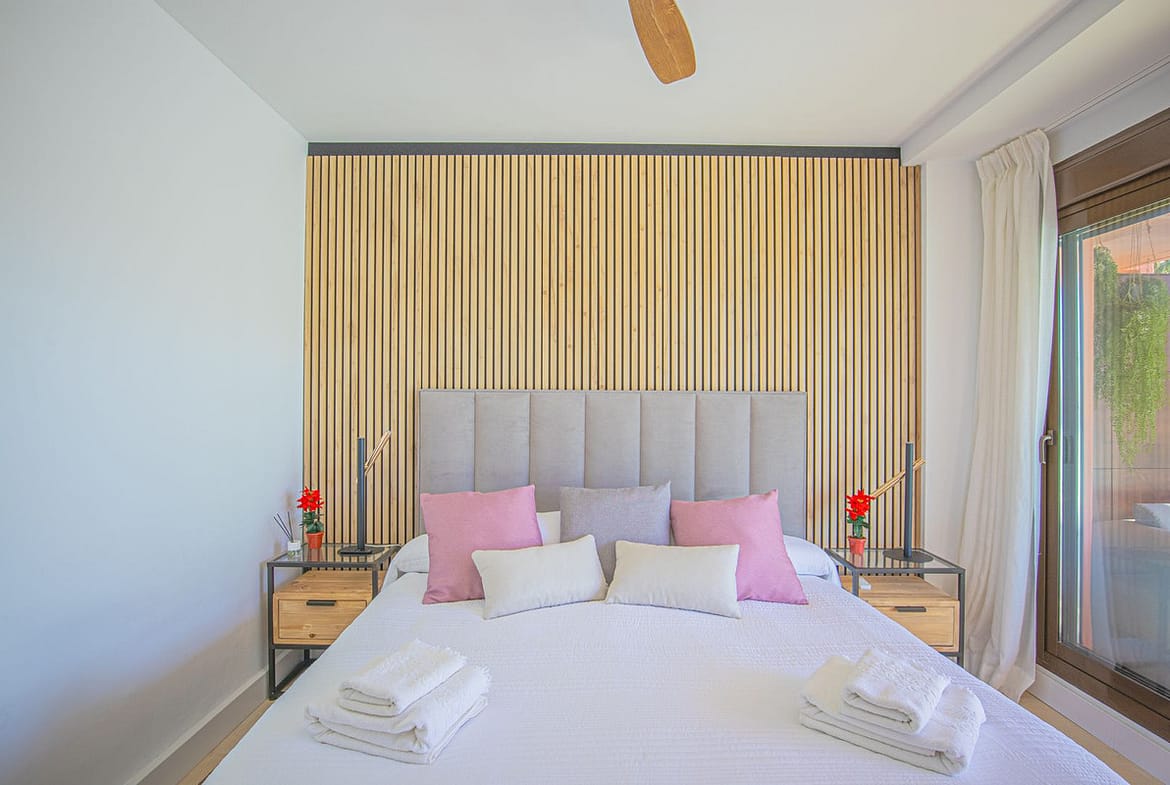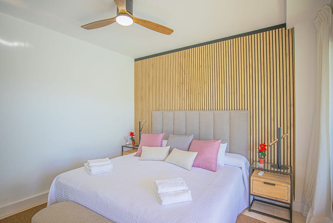 Renovated apartments with 3 bedrooms, living room, kitchen, two terraces, with all amenities in Las Salinas. The apartments are located 200 meters from the beach, 8 km from Estepona, 18 km from Marbella and 34 km from Ronda. It offers 2 shared outdoor pools, 1 indoor pool, sauna, gym and free Wi-Fi. The master bedroom has a private bathroom, King-size bed, large TV, large closet and private access to the terrace. The second bedroom has two separate beds , bedside table, closet, large TV and access to a small terrace. The third bedroom has two separate beds, bedside table, closet, large TV and access to a small terrace. The second bathroom with shower and toilet has a separate entrance from the shared hallway. The kitchen is equipped with a built-in dishwasher, refrigerator, hob, oven, microwave, extractor hood, kettle, toaster and coffee maker. The living room has a large flat screen TV, a large dining table for 6 people, a large corner sofa and access to a large sun terrace. There is also a laundry room with washer and dryer, ironing board and iron.The apartment has dedicated parking space in the undergounf parking and a storage room. Apartment will be sold fully furnished.