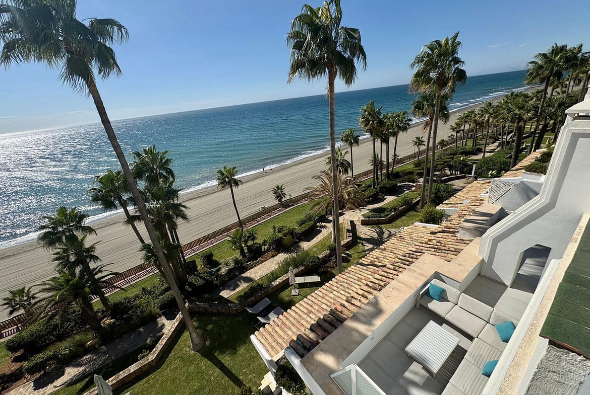 This exclusive frontline duplex penthouse is located within the prestigious Dominion Beach development, one of the most sought-after residential areas in Estepona. Positioned just 50 metres from the sea, the apartment offers a unique setting with immediate proximity to the beach and an exceptional Mediterranean lifestyle.
