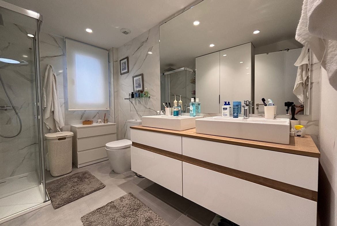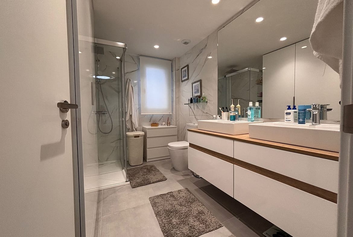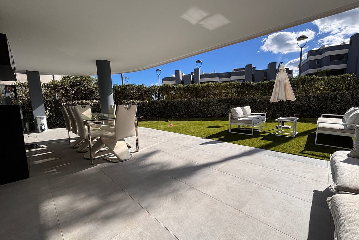 Modern Mediterranean corner ground-floor apartment located between Estepona and Puerto Banús, offering a unique opportunity to enjoy an exclusive lifestyle in the sought-after area of La Resina. Featuring three bedrooms and two bathrooms, this property stands out for its contemporary design and seamless connection between indoor and outdoor spaces. Its south-facing orientation ensures natural light throughout the day, while the spacious private garden with pool views creates an ideal setting for relaxation or social gatherings in total privacy
