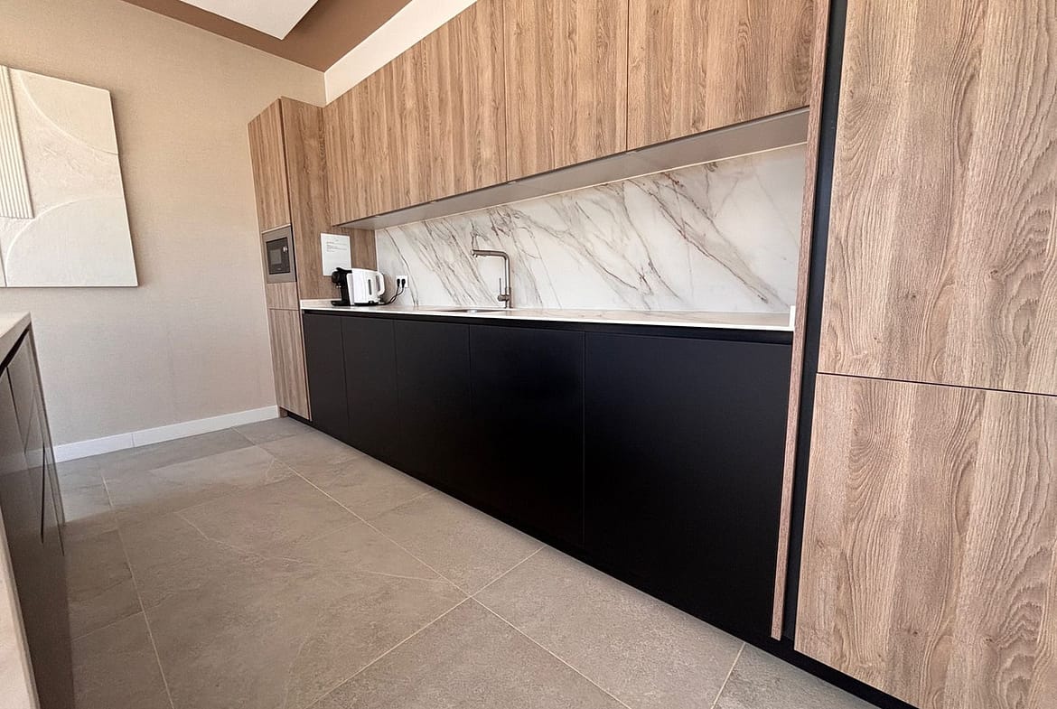 The open-concept living room, dining area and kitchen flow effortlessly onto the terrace and garden, creating a bright, spacious and welcoming environment. The kitchen is equipped , extended cabinetry and a separate laundry area. The master bedroom includes a charming enclosed terrace that provides an additional sunlit and serene space. All bedrooms feature built-in wardrobes and electric shutters, while the overall finishes reflect a high standard of quality, comfort and style