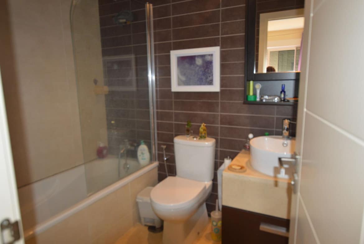 You have only 1 floor to take up the lifyt which also connects to th eunderground garage places. This apartment has a smaller terrace than the other ones in the urbanisation to gain place for the third bedroom at a good size , enough for a doble bed. The other 2 bedrooms are one of them with th ebigger bath room ensuite the main bedroom with access to the terrace next to the sunny living room, all south orientation as the third bedroom who shares the second bathroom with a shower plate in the hall. and has a big door with access to the south terrace.