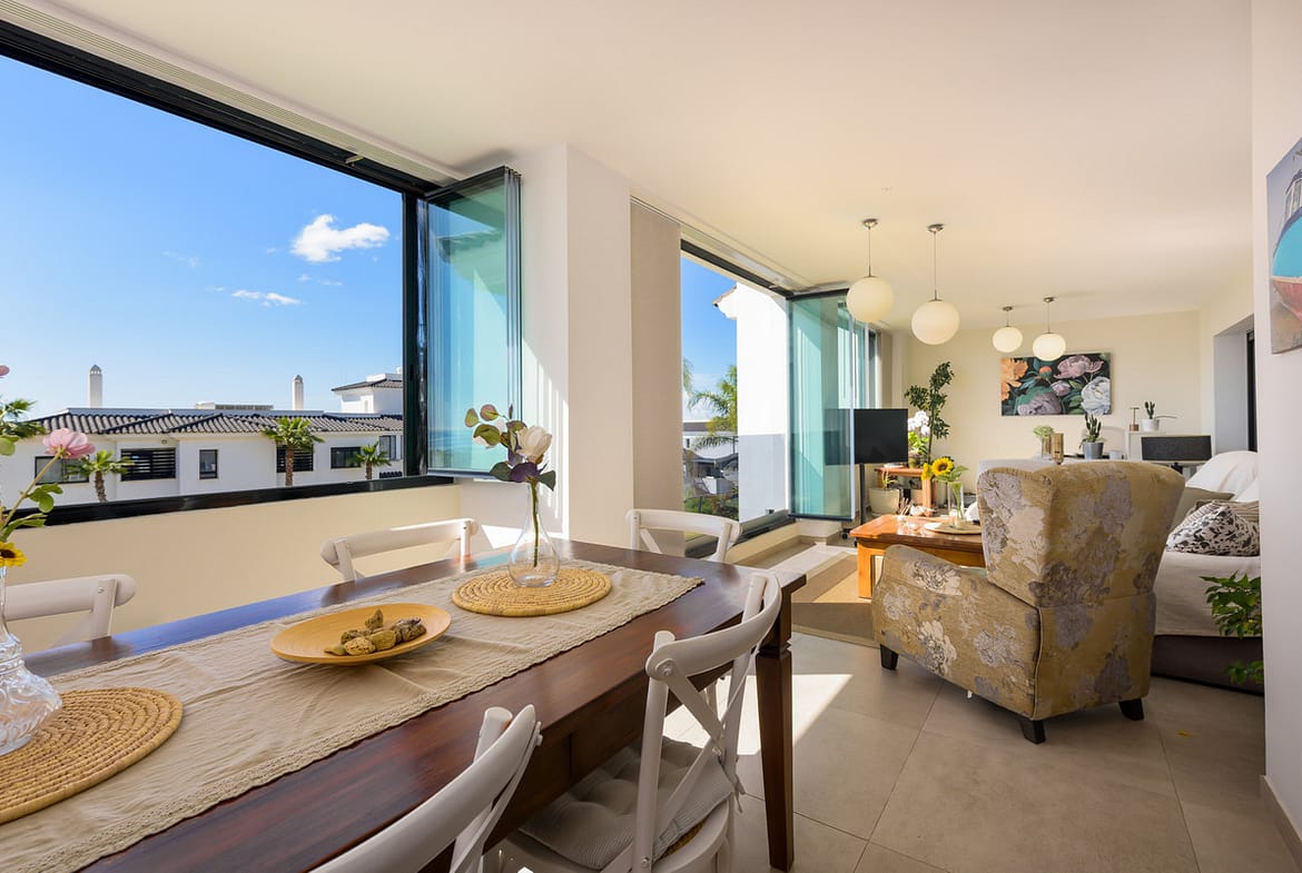 This spacious home consists of 3 bedrooms and 2 full bathrooms, one of them en suite, a guest toilet with double sink, a large living room of almost 40m2 which has been minimized to make a large dressing room for the master bedroom. A state-of-the-art kitchen fully equipped with exclusive high-quality “Neff” appliances gives a modern and clean touch. We can add that from the secondary bedrooms are quite spacious (+13m2) we see Sierra Bermeja and from the master bedroom you can see some impressive sunrises with direct access to the terrace.