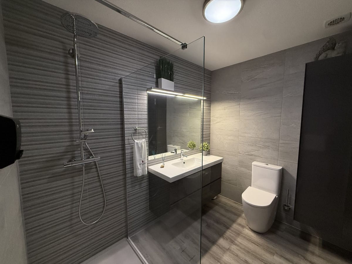 This recently renovated 3-bedroom, 3-bathroom apartment offers 170 m² of bright, spacious living on one level, originally created by combining two units into one. Located on the entrance level of a 6-storey building, yet equivalent to the 3rd floor, it benefits from complete privacy with no neighbours directly above. The home features a new kitchen with Bosch and Siemens appliances, granite worktops, new floors, doors, high ceilings, a new boiler, and UV-protection double-glazed windows throughout. The master bedroom includes an en-suite bathroom and walk-in closet. A 12 m² covered private terrace provides peaceful sea and mountain views, and the property is east-facing.