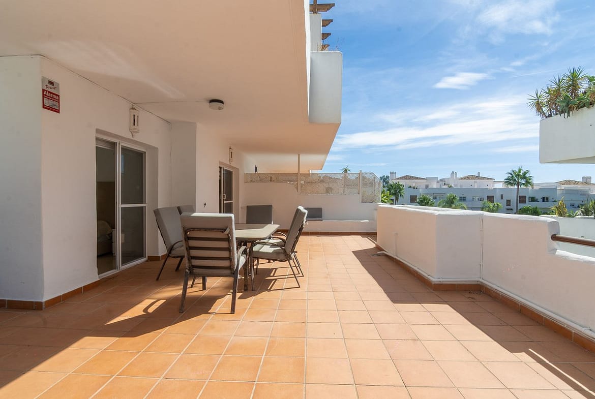 The master bedroom features fitted wardrobes, an en-suite bathroom and direct access to the terrace. The apartment also offers two additional guest bedrooms, one of them with a private terrace, which share a family bathroom.