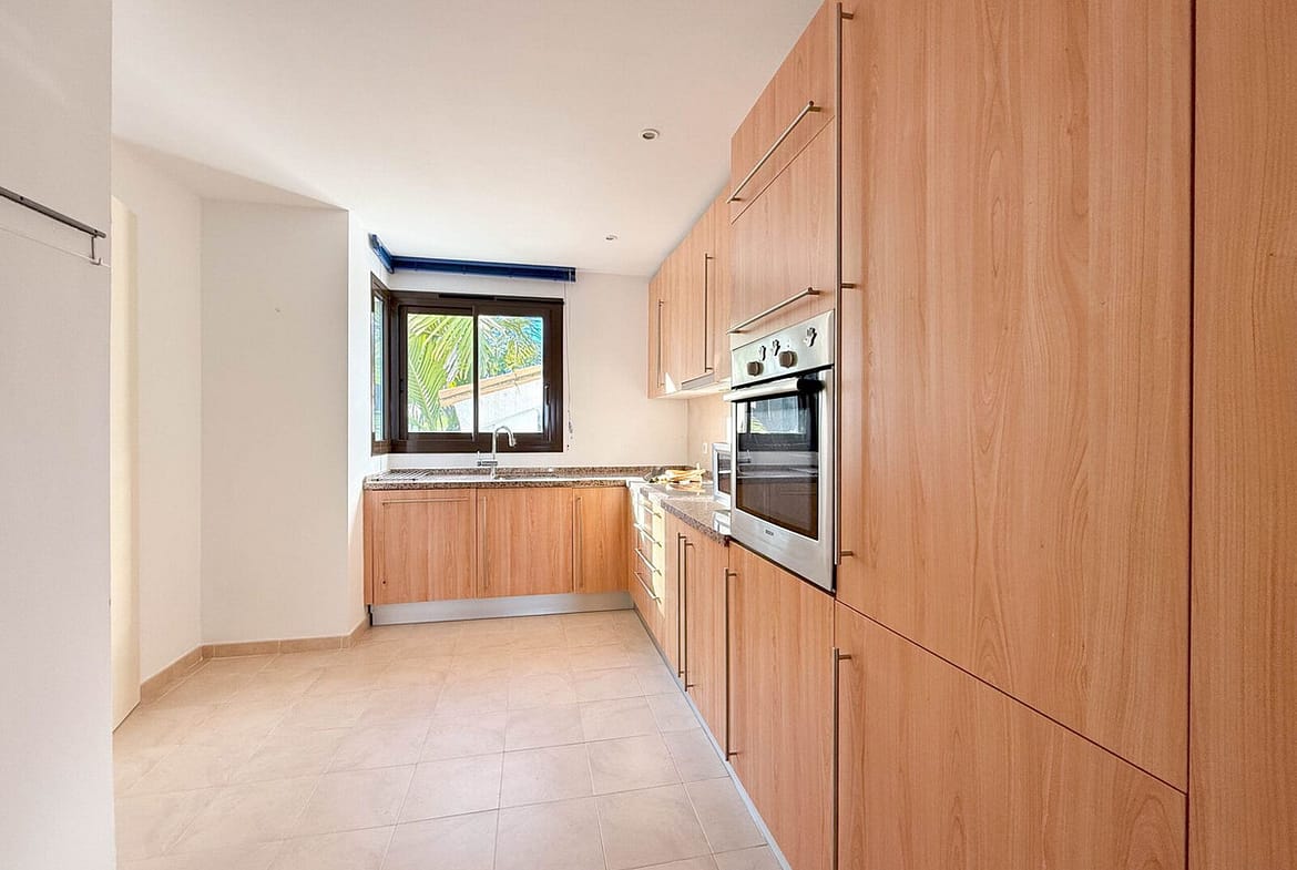 The property features a spacious terrace facing the morning sun, offering open views of the sea, the swimming pool, and the surrounding tropical gardens. Part of the terrace is fitted with removable glass panels, allowing you to enjoy the space open in summer or enclosed during winter—perfect for year-round use.