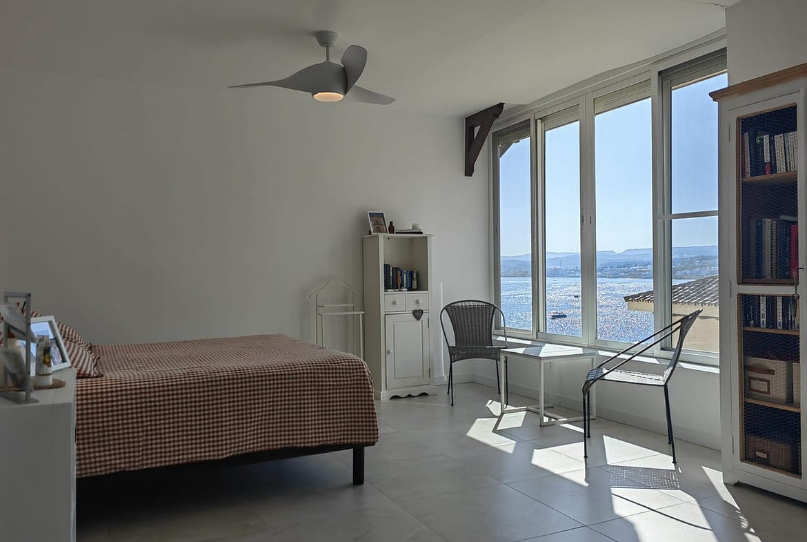 On the opposite side, the large master bedroom features an ensuite bathroom and breathtaking sea views. Two further guest bedrooms, one with the same stunning outlook, share a newly refurbished bathroom.