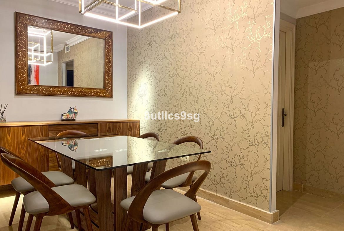 The apartment has 2 bedrooms and two bathrooms, the main one en suite, with a total area of 141m2, with modern decoration and high-quality furniture. It is bright, with light pastel colors, comfortable and equipped with all the comforts that you should offer in this category.