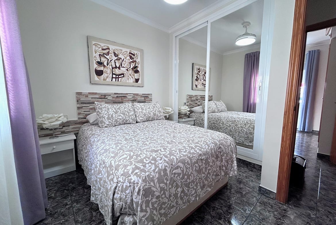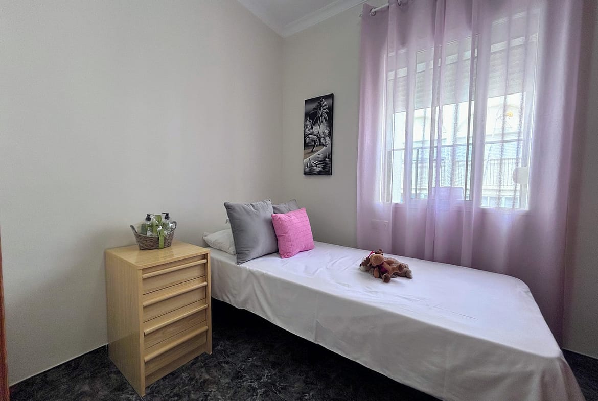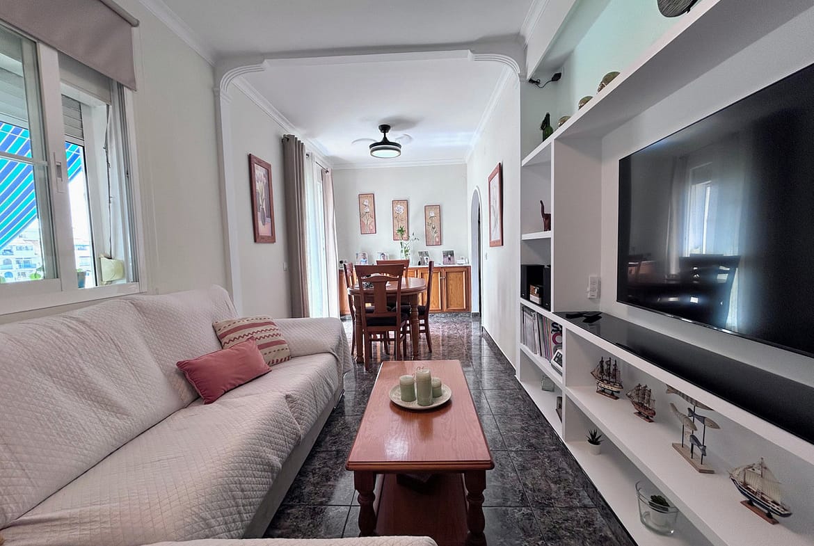 The property offers 3 bedrooms, 1 bathroom, a spacious living room with access to a large terrace boasting panoramic views of the sea and Gibraltar. It is sold fully furnished and includes a fully equipped kitchen with a laundry area.