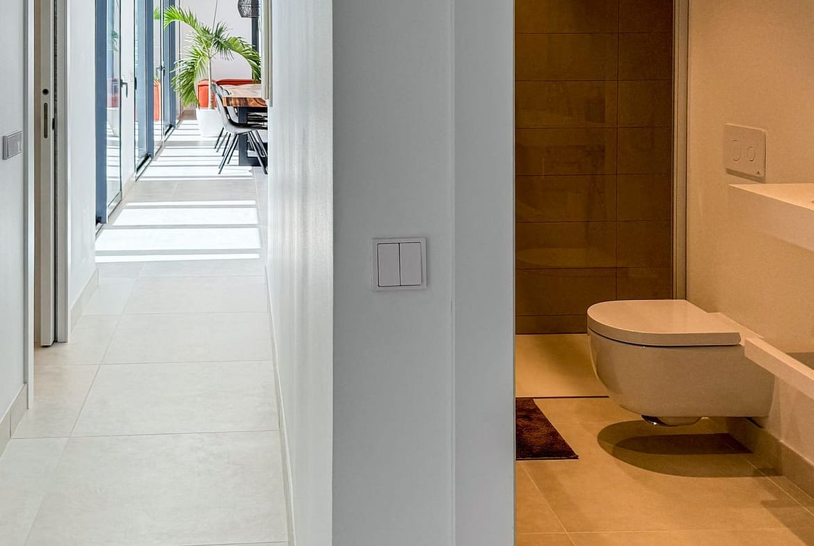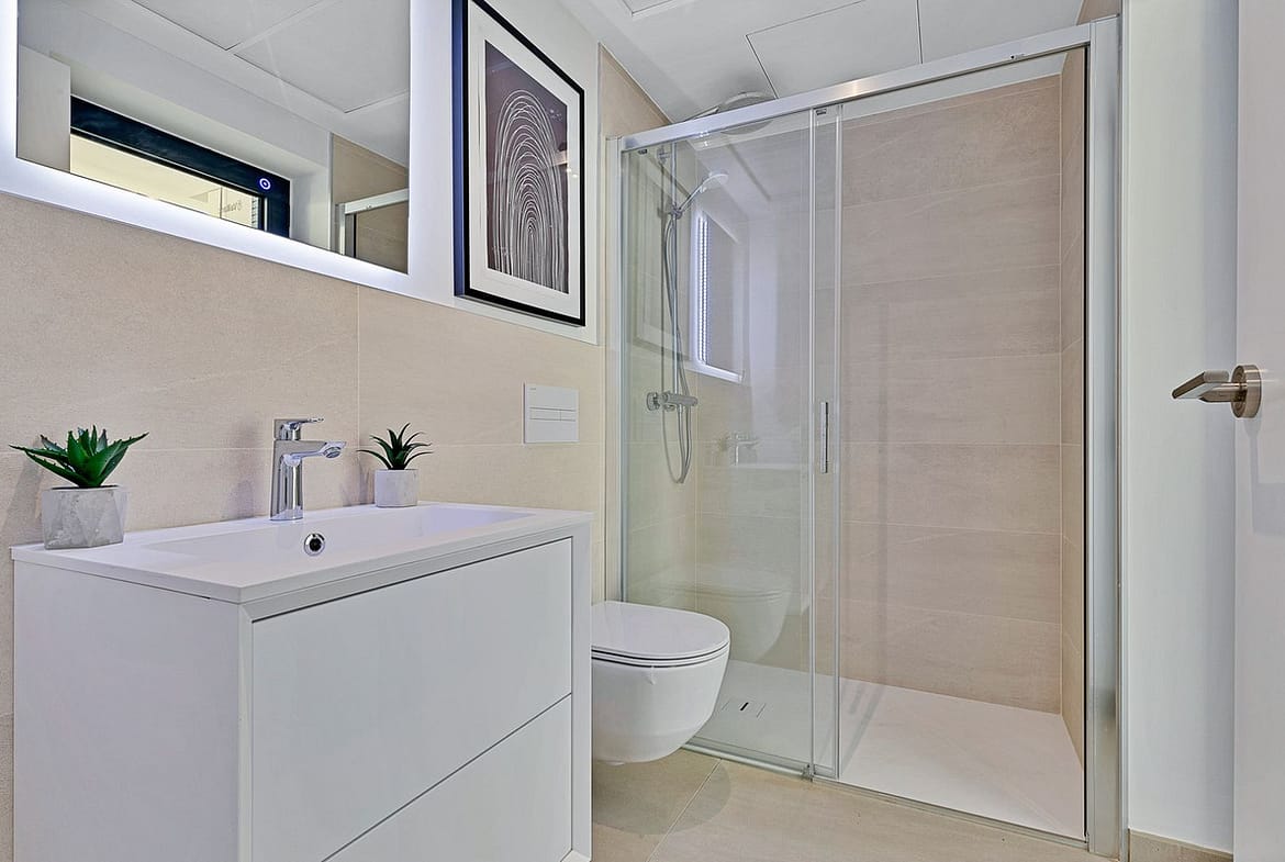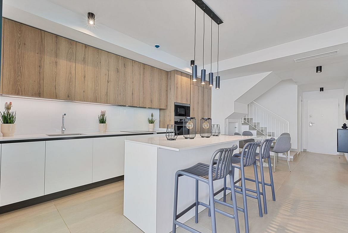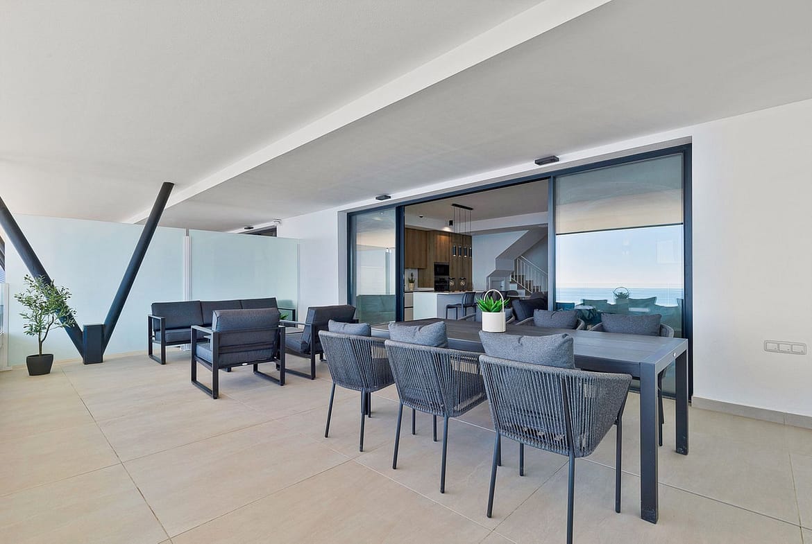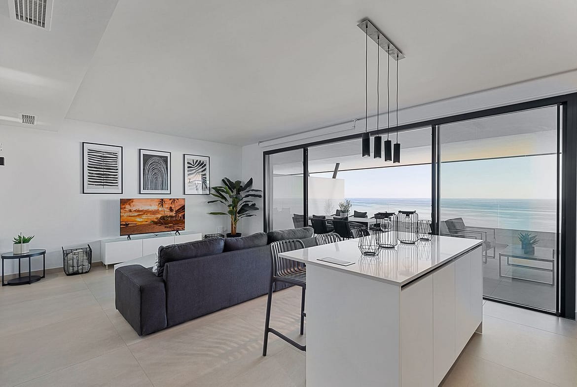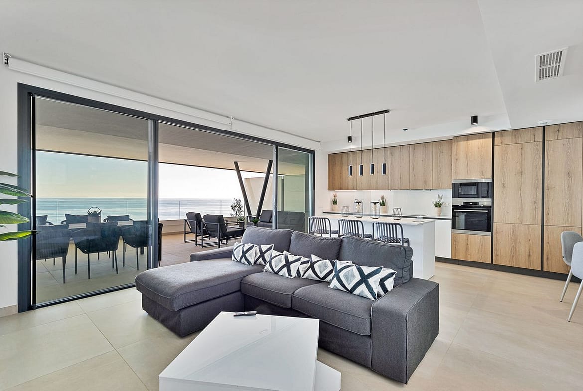 If you are looking for a stylish apartment made with the highest quality materials, step inside! The location is unbeatable and the south-facing balconies offer views of the sea far into the horizon. The fully equipped kitchen opens onto the living room and terrace.