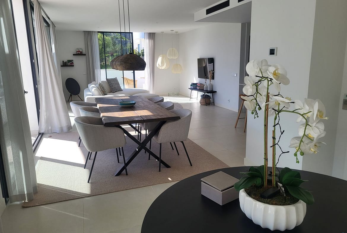 Beyond the apartment itself, Higuerón West offers an unmatched lifestyle. Residents enjoy landscaped gardens, pools, children’s play areas, and even pet-friendly zones – all within a secure, gated community. Just moments away lies the exclusive Higuerón Resort, featuring an award-winning spa, tennis and paddle courts, two indoor pools, and a full spectrum of wellness and fitness facilities.
