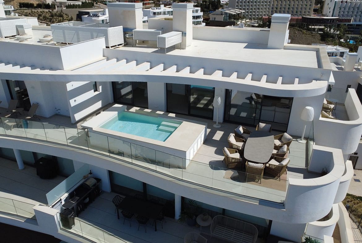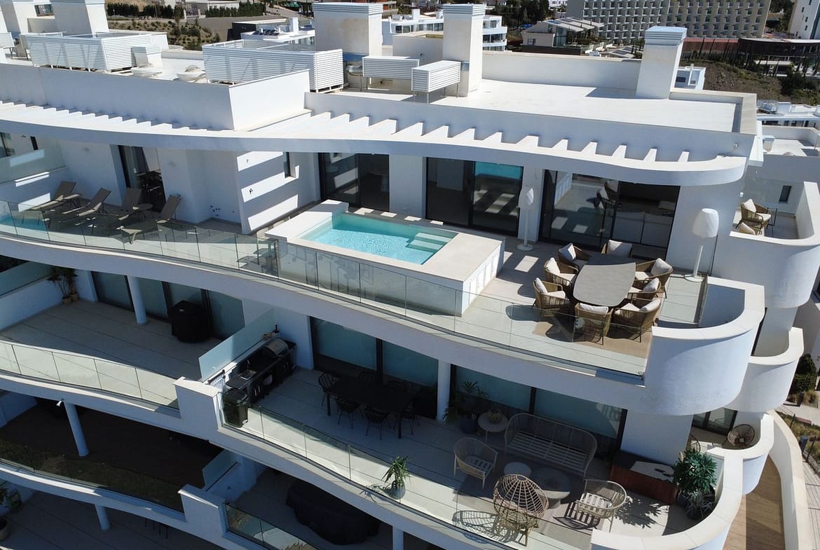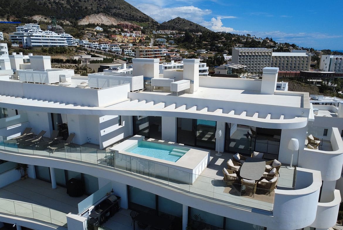 We present this incredible penthouse/sky villa located in the luxurious Higuerón West 217 complex of Higuerón Resort, overlooking the entire Fuengirola coast.