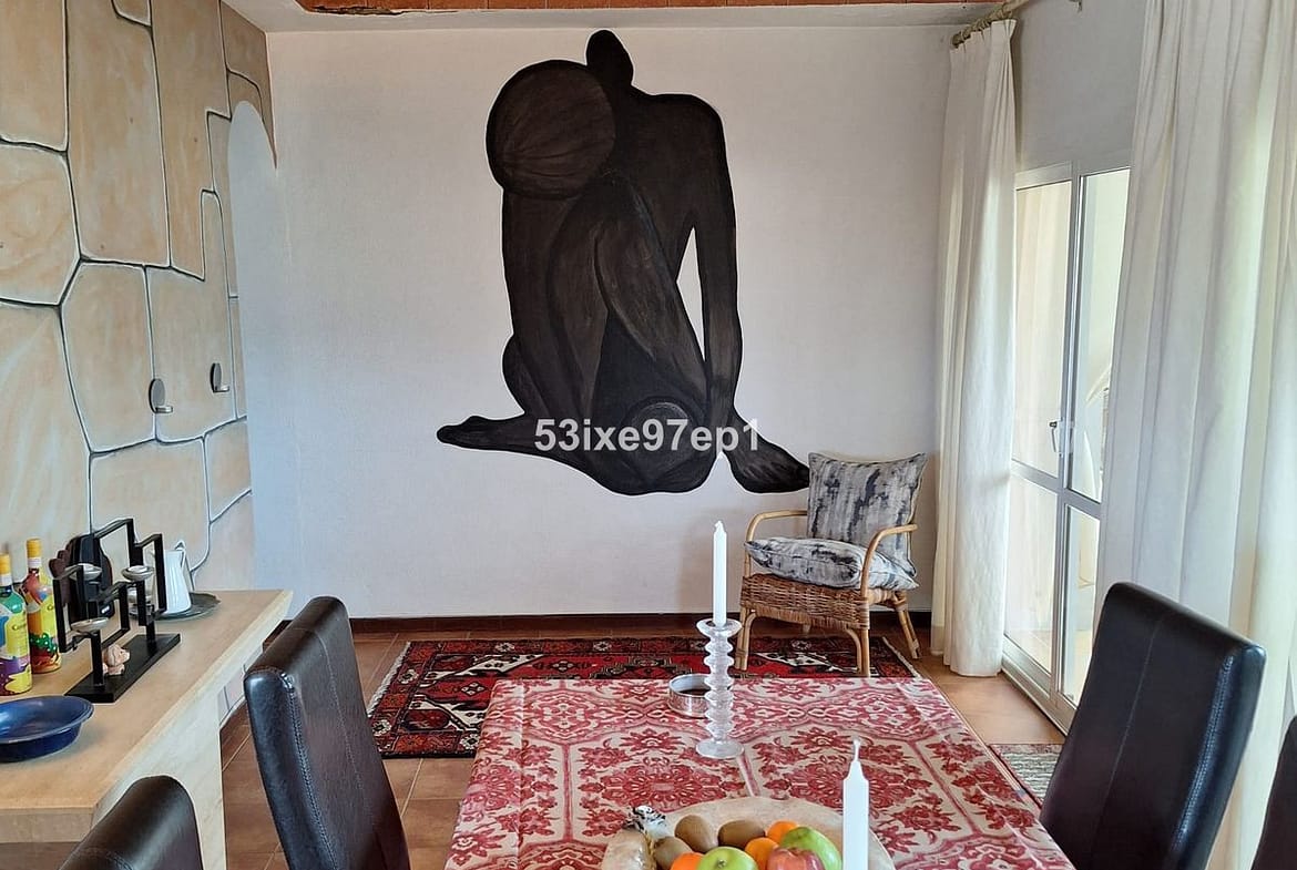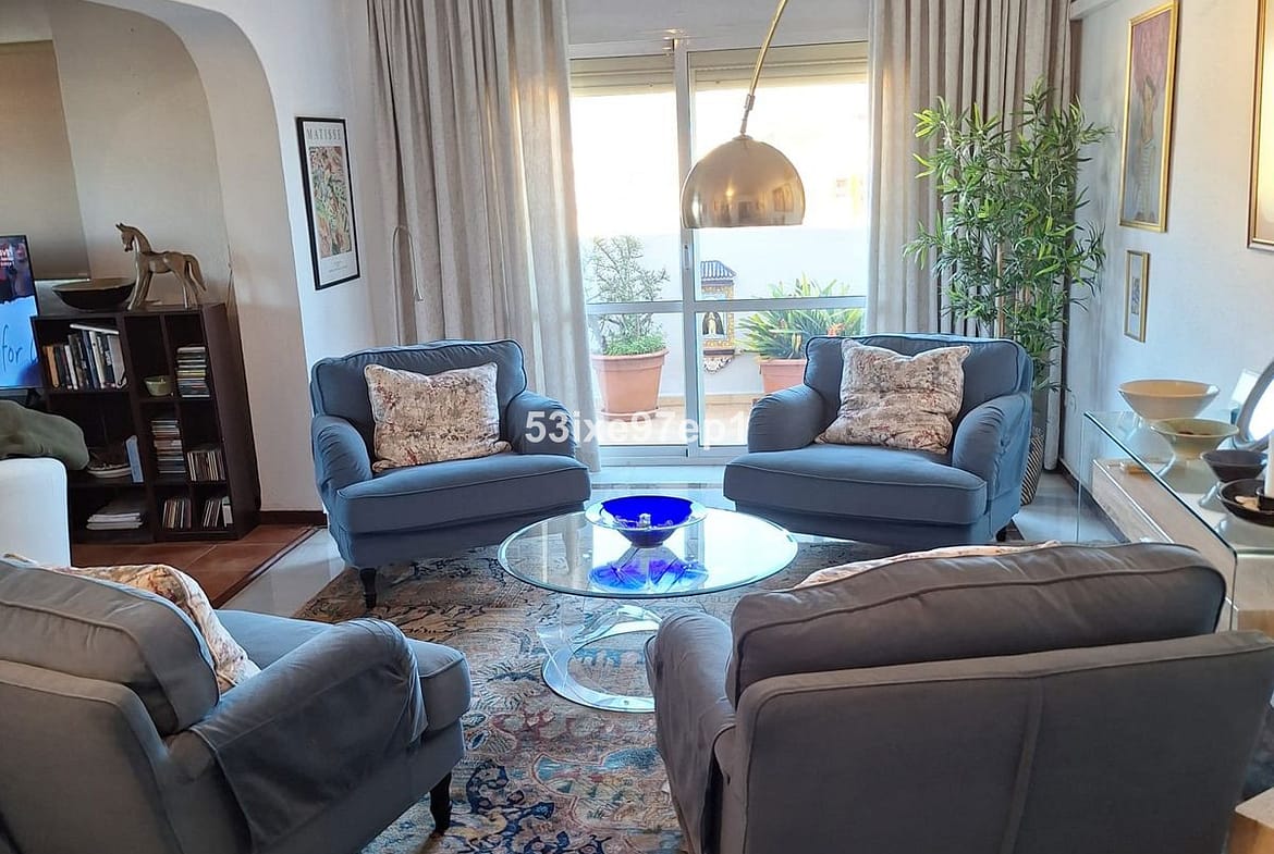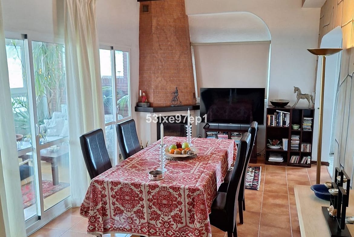 From the hall we then enter the living room with access to a terrace where you can look out over the roof ridges of Fuengirola down to the sea.
