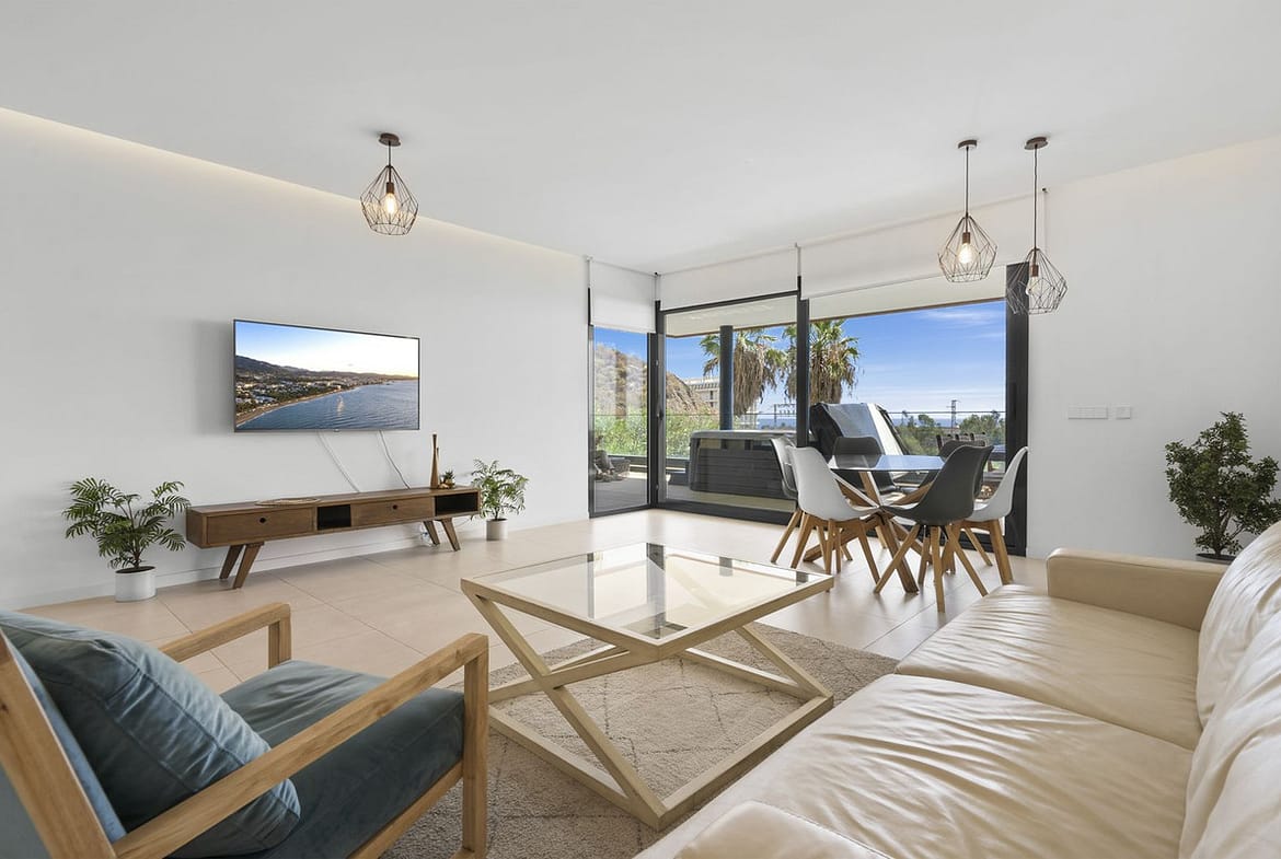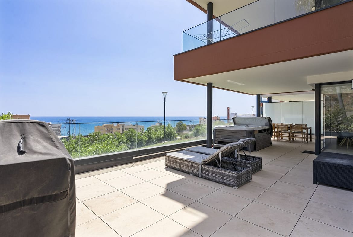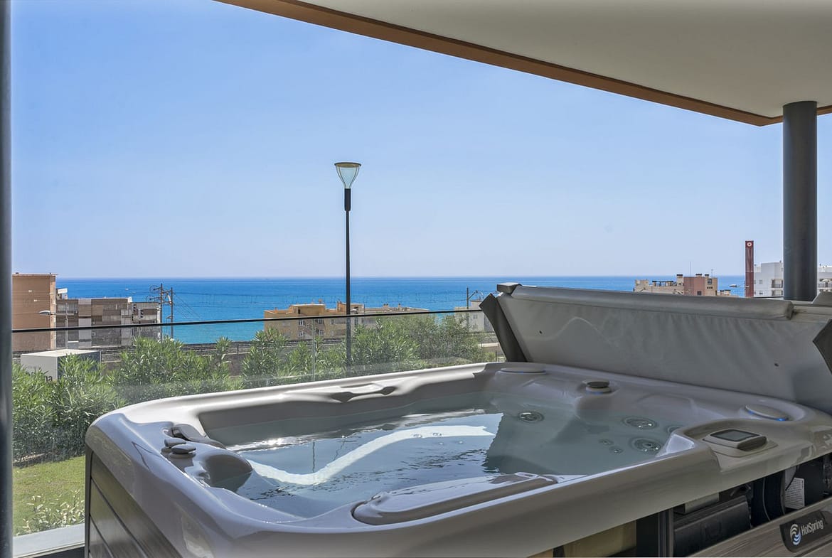 This apartment features 3 spacious bedrooms, 2 modern bathrooms, and an open-concept living area that leads to a magnificent 63m² terrace. The terrace is perfect for entertaining, with a built-in barbeque and a private jacuzzi where you can relax and enjoy the breathtaking views of the Fuengirola coastline.
