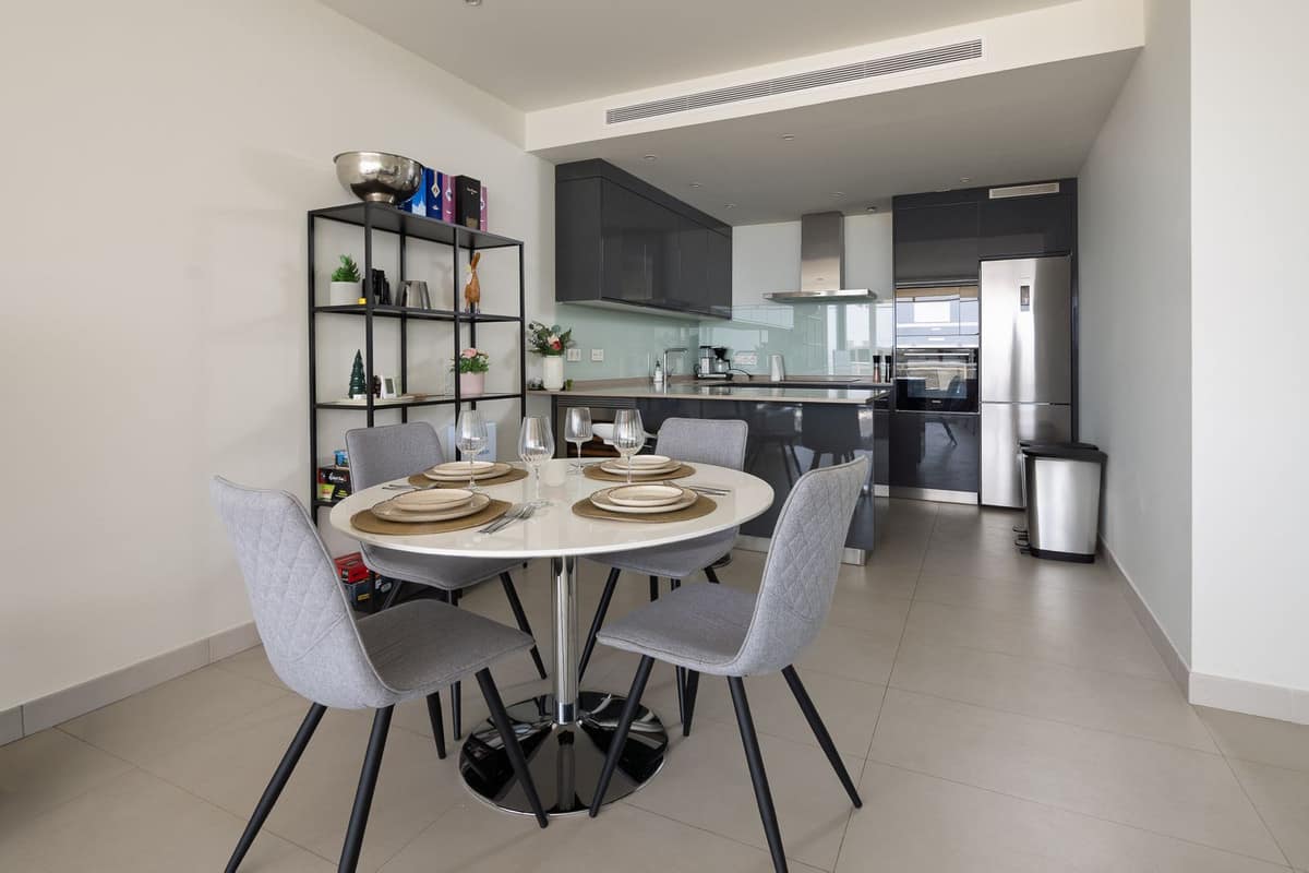 The apartment boasts three well-appointed bedrooms, including a serene master suite with a private bathroom with underfloor heating. Further more the secondary bedroom also offers an ensuite. All three bathrooms are modern and stylish, featuring quality fixtures and finishes.